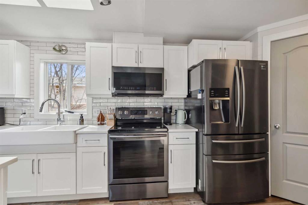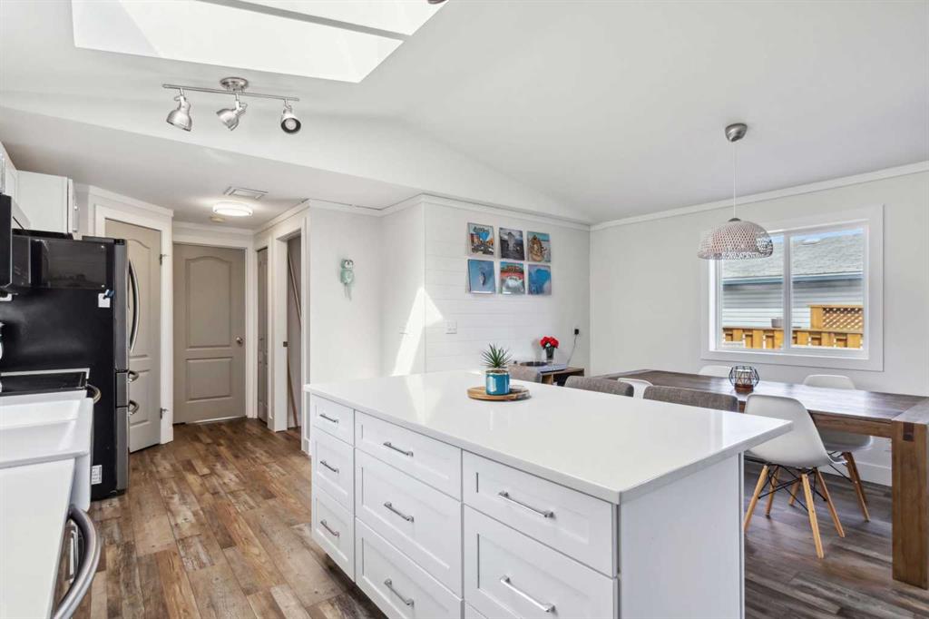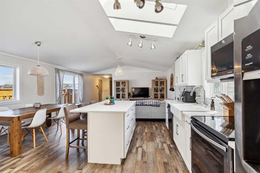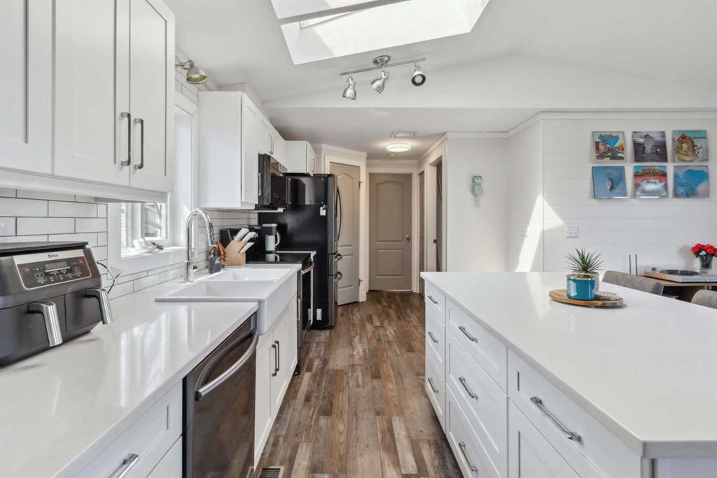 THIS ONE WILL CHECK OFF ALL THE BOXES, RENOVATED TOP TO BOTTOM TO A MODERN FARMHOUSE VIBES PLUS A DETACHED OVERSIZED SHED. Discover the epitome of charm and comfort with this FULLY RENOVATED HOME. Boasting a snazzy modern farmhouse aesthetic, this property showcases every feature you\'ve been dreaming of at a wallet-friendly price! Step inside and prepare to be awed by meticulous renovations that breathe new life into every corner. The open floor plan features new luxurious vinyl plank flooring that seamlessly connects the living spaces. At the heart of the home, a stunning dream kitchen awaits, equipped with pristine white quartz countertops, a large island perfect for gatherings, sleek black stainless appliances, a stylish tile backsplash, and a handy corner pantry. Efficiency meets elegance in the laundry room, appointed with built-in cabinets and chic wood countertops. The primary bedroom offers ample space and leads into an upgraded ensuite with a sizable vanity, a corner jet tub, and a standalone shower, promising a spa-like experience daily. Two additional bedrooms continue the home’s stylish theme, one featuring an enchanting wood feature wall. The second full bathroom doesn’t skimp on style either, flaunting exquisite tile flooring and trendy gold fixtures. Step outside to a fully fenced yard with a spacious, newly constructed deck with a beautiful privacy wall that runs the entire length of the home. In addition, you have a barn-style storage shed completing the modern farmhouse theme. Extensive exterior renovations also include new skirting and eave troughs, along with a comprehensive refresh under the house—a $10,000 upgrade ensuring long-lasting peace of mind. To top it all off, enjoy the benefits of a newly installed furnace(1 year ago). Another fantastic upgrade is central a/c. This move-in-ready home requires no additional spending post-purchase and claims a new effective age of only 7 years, with 40 years of economic life remaining. Perfectly positioned within walking distance to schools, parks, and shopping, this home isn’t just a place to live—it’s a place to love. Don’t miss out, schedule your personal tour today and step into the home you deserve!