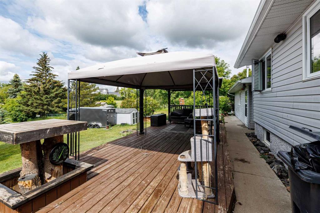 Outside, enjoy your private backyard oasis featuring a large deck with gas hook-up for your BBQ, a fire pit area for those warm summer evenings, and a handy storage shed. The property also includes a double detached heated garage connected by a breezeway, plus a long driveway with plenty of space for RV parking. Updates include a hot water tank (2024), vinyl windows (2015), and shingles (2022). All this within walking distance to the K-12 school, and close to fishing, festivals, and community events. Conveniently located just 20 minutes to Stettler, 25 minutes to Lacombe, and 35 minutes to Red Deer, you’ll love the quiet charm of Alix while still being close to larger centers.