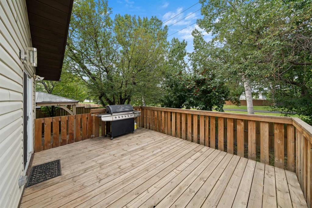 This oversized bungalow sits on a giant pie-shaped lot at the end of a quiet cul-de-sac, backing west onto a green belt and school pathway. Inside, the updates are already handled—flooring, paint, kitchen refresh, mechanicals, and more—so you can skip the reno headache and just move right in. The main floor gives you room to live: a bright living and dining area, an eat-in nook with deck access, and three bedrooms including a primary with cheater ensuite. Downstairs cranks up the space even more with a sprawling family room, another bedroom (just needs egress window), bath, and laundry. Outside? A huge two-tiered deck, gorgeous roman paved fire pit patio, an added gazebo on the lower deck gives a break from the sun or rain while still enjoying this backyard oasis. plus an insulated double garage that actually fits vehicles... and has so much extra height, the possibilities are endless. Close to schools, shopping, and the Genesis Centre, this home is proof that not all bungalows are created equal.