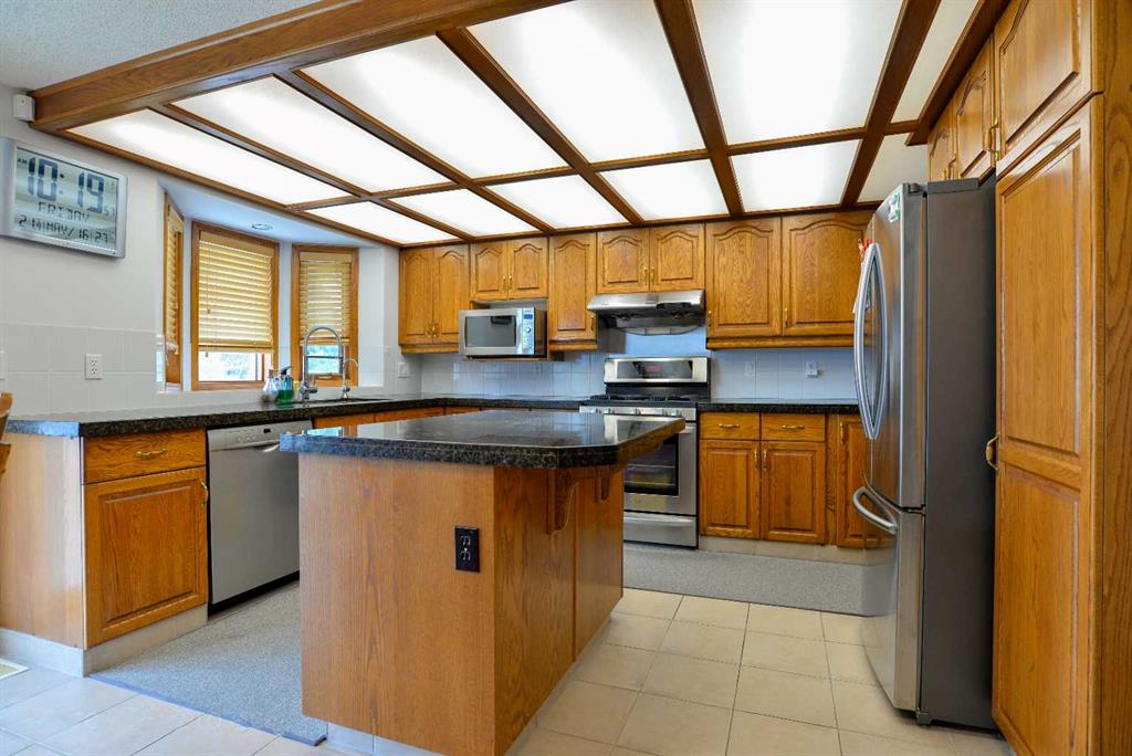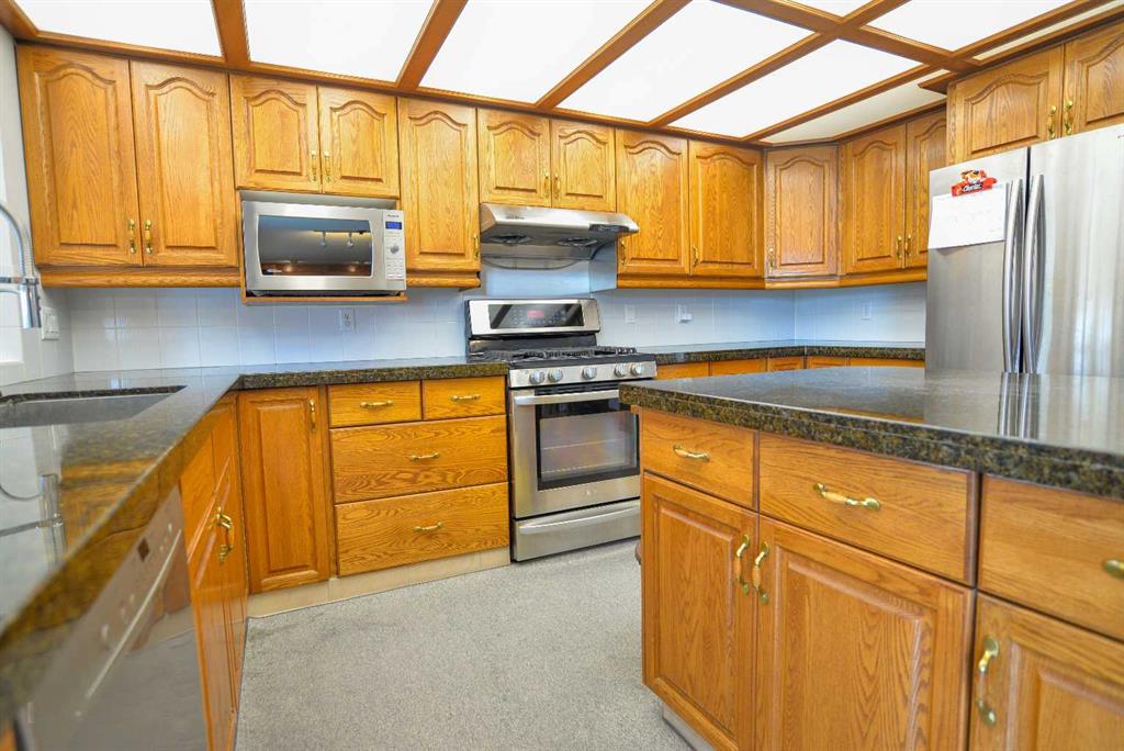 INCREDIBLE & IMMACULATE! UPGRADED 5 BEDROOM 2 STOREY SPLIT WITH WALK-OUT BASEMENT! 4 BEDROOMS UP WITH 1 BEDROOM ON MAIN FLOOR with full Bath for Main floor living, CAN BE USED FOR DEN/OFFICE also! TOTAL OF 3 FULL BATHS. VAULTED LIVING ROOM/DINING ROOM OFF STUNNING ISLAND KITCHEN WITH GRANITE COUNTERS & STAINLESS STEEL APPLIANCES WITH GAS STOVE & LOTS OF CUPBOARDS & built in DESK. DINING NOOK OFF UPPER VINYL DECK WITH ALUMINUM RAILING & STAIRS TO LOWER COVERED cement PATIO & REAR YARD. LARGE FAMILY ROOM WITH BUILT IN ENTERTAINMENT CENTER WITH FIREPLACE. HUGE MASTER SUITE WITH BIG WALK-IN CLOSET, built in Makeup counter & GREAT ENSUITE WITH DOUBLE VANITIES, JETTED TUB & SEPARATE SHOWER! 3 OTHER LARGE BEDROOMS UP WITH BUILT IN DESKS IN 2. UPGRADED NEWER HARDWOOD FLOORS & CENTRAL AIR CONDITIONING, ARE SOME NEWER FEATURES. WALK OUT BASEMENT DEVELOPED WITH LARGE REC ROOM AREA, OFFICE & HOBBY ROOM, with room for 6th Bedroom, Full BATH & TONS OF STORAGE. 2 FURNACES & 2 NEWER HOTWATER TANKS. FANTASTIC WEST BACKING YARD FENCED & LANDSCAPED. A PERFECT FAMILY HOME WAITING FOR A GREAT FAMILY!