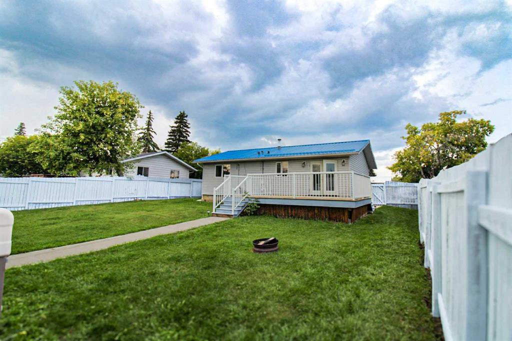 Immediate possession - ready when you are! Welcome to this beautifully updated four-bedroom, two-bathroom bungalow, where tasteful upgrades meet comfort and functionality. The main floor offers three bedrooms, a bright and inviting living room, a dining area, and a well-appointed kitchen with abundant cabinetry and French doors opening to the back deck. The fully developed basement expands your living space with a recreation area, a remodeled three-piece bathroom, and a generously sized bedroom with a walk-in closet. Thoughtful recent updates provide peace of mind, including a new metal roof, furnace, stove, dishwasher, sewage pump, a completely refinished basement, and a fresh paint upstairs, on the fence and on the deck. Outdoors, enjoy summer evenings on the large rear deck. The fully fenced backyard features a raised garden area, ample space for future projects, and a heated detached garage with plenty of parking and storage. Located close to the sports complex center, two schools, the outdoor rink, and walking trail, this bungalow is the perfect choice for families or anyone seeking comfort and convenience. Ready for you now!