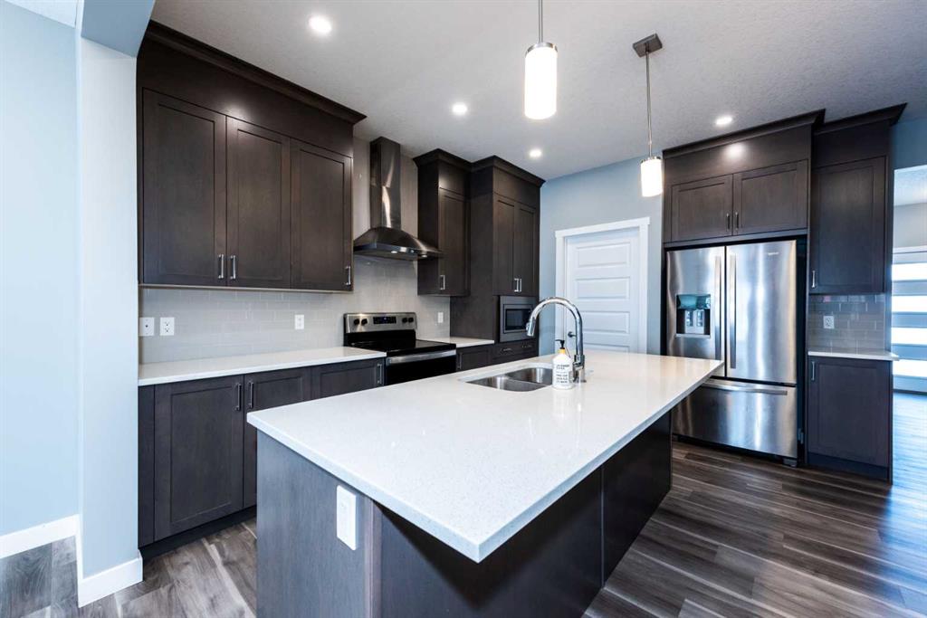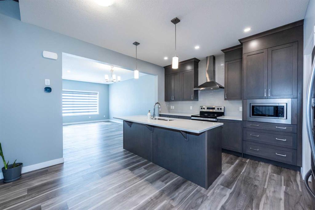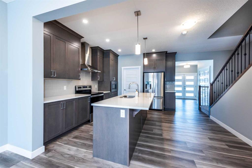 Welcome to this exceptional ,vibrant and family-friendly Homestead community of Calgary NE. With 5 bedrooms, 5 full bathrooms, and nearly 2,627.18 sq. ft. of beautifully crafted living space, this north-facing home is a rare find at this price point—ideal for both investors and first-time homebuyers. Situated just steps from scenic ponds, green belts, and walking/bike paths, the home offers the perfect blend of nature and convenience. School bus service operates from this location, and a transit bus stop is directly across the street—making daily commutes a breeze. The heart of the home is the gourmet kitchen, boasting quartz countertops, a large island, built-in microwave, range hood, and plenty of cabinet space. The open-concept layout flows into the sun-filled nook and spacious great room, finished with luxury vinyl plank flooring and stylish ceramic tiles. Upstairs, plush carpet leads to a well-designed upper level that includes a spacious master retreat with a private 4-piece Ensuite, two more generously sized bedrooms, a third full bathroom, and a convenient laundry room. Adding incredible value is the fully developed, legal basement rental suite with a separate entrance, its own furnace, and independent laundry. Legal basement have two full washrooms, The basement kitchen is fully equipped, featuring a pantry, and ample cabinetry—perfect for generating mortgage-helping rental income or hosting extended family. A rare opportunity in a fast-growing, well-connected community—book your private showing today before it’s gone!