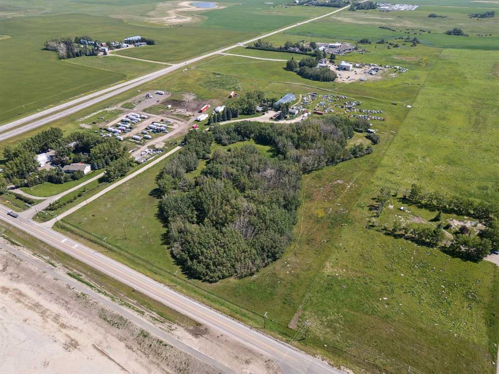 20.58 acres located in the growing industrial community of East Balzac. Tons of potential and a great location! Currently zoned R-RUR, but is Included in the East Balzac ASP (SDA5), with the possibility for industrial & business uses. Application has been made to re-zone to I-HVY, pending approval. 2 Large Quonsets included, Larger Quonset 155’ x 56’, zipper lock – galvanized steel, uninsulated. Doors are 14’ high x 20’ wide. Smaller shop 34’ x 50’ heated & insulated. Property includes farm utilities: electrical, gas, septic and well. Great location, with quick access to Dwight McClennan, Metis Trail & Stoney Trail, QE2, Crossiron Drive and the Calgary International Airport.