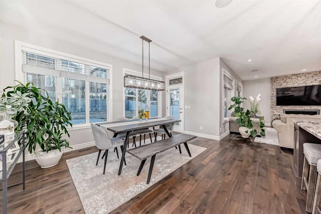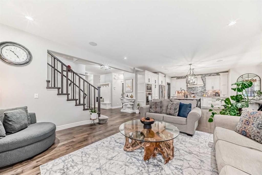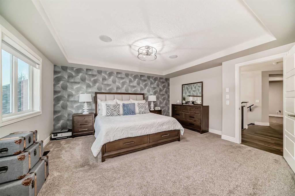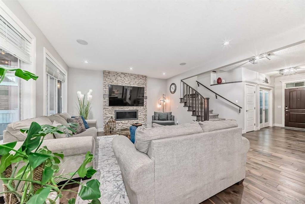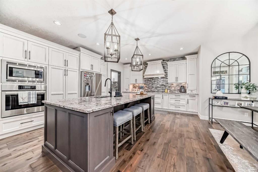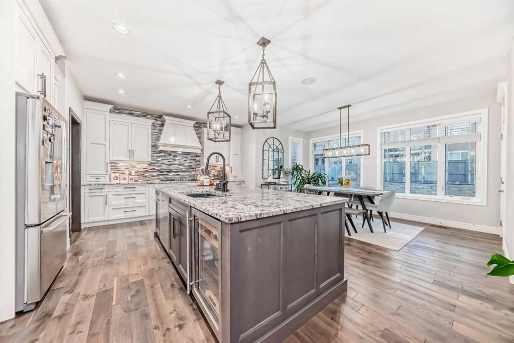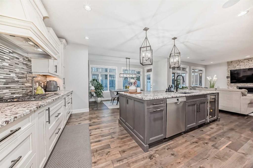 Welcome to this stunning executive home featuring a triple car garage and over 4,098 sq. ft. of beautifully designed living space. With 5 bedrooms, 4 bathrooms, and a main floor office, this residence is nestled on one of Chestermere’s most tranquil and sought-after streets. This home is loaded with high-end finishes and thoughtful upgrades, including new carpet, rich hardwood floors, granite countertops, upgraded and recessed lighting, and a chef’s kitchen outfitted with premium built-in Bosch stainless steel appliances. Additional features include two air conditioning units, central vacuum, built-in speakers, CCTV security cameras, a heated garage, and an exposed aggregate concrete driveway. As you step through the front door, you’re welcomed by a spacious foyer featuring a built-in bench and coat hooks. Just off the entry is a beautifully designed home office, perfectly placed for privacy and productivity. The main floor boasts an open-concept layout ideal for entertaining. The family room offers plenty of seating space and a cozy gas fireplace with a floor-to-ceiling stone surround. The chef’s kitchen is a dream, featuring Bosch built-in stainless-steel appliances, a gas cooktop with a custom hood fan canopy, granite counters, and a kitchen island with a built-in bar fridge for extra beverage storage. A walk-through butler’s pantry with a prep sink provides additional storage and connects seamlessly to the mudroom, which includes built-in cabinetry, a bench, and coat hooks. The dining area is located at the back of the home, filled with natural light from large windows and providing easy access to the backyard. A conveniently located 2-piece bathroom completes the main level. The backyard is a true outdoor retreat with a covered deck, a generous grassy area with mature trees, and a stamped concrete pathway leading to a separate patio with seating around a cozy fire pit — ideal for relaxing or entertaining guests. Upstairs, you\'ll find four generously sized bedrooms, each featuring custom-built walk-in closets. A bright and spacious bonus room with vaulted ceilings offers additional space for relaxation or play. The luxurious primary suite is the ultimate retreat with tray ceilings, a spa-inspired 5-piece ensuite that includes dual vanities, a freestanding soaker tub, a custom tile shower with bench, and a massive walk-in closet with custom built-ins. A full 4-piece bathroom and a well-placed laundry room complete the upper level. The fully finished basement is designed for entertaining, with 9-foot ceilings and a large open family and recreation area. A stylish wet bar includes an island with a fridge, stove, and dishwasher — perfect for hosting. The lower level also features a fifth bedroom and a modern 3-piece bathroom with a custom walk-in shower.