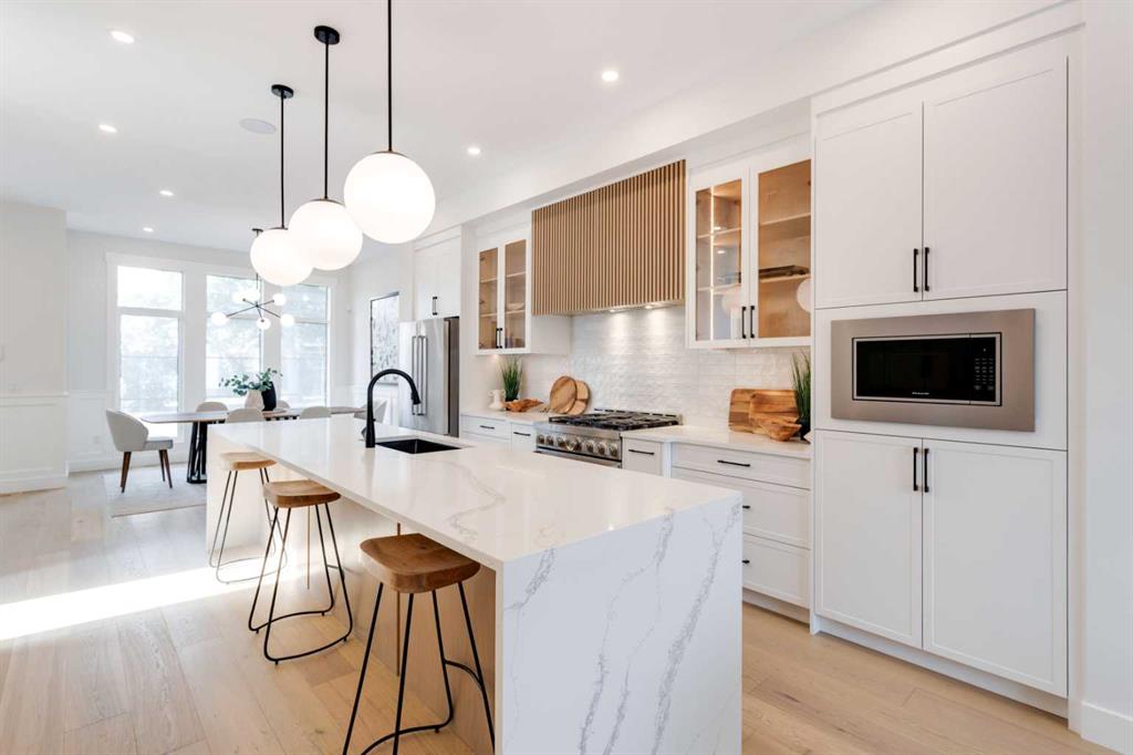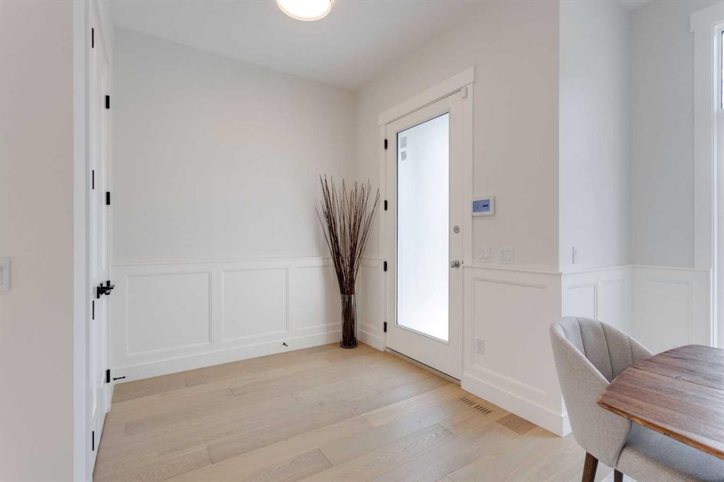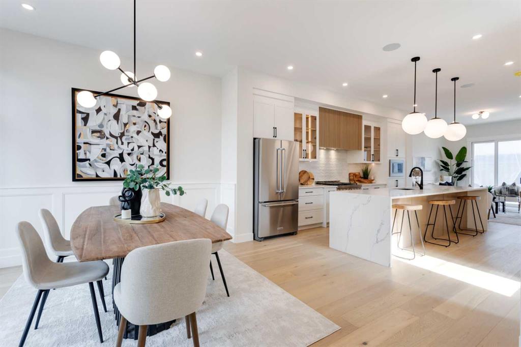 Step inside this modern semi-detached inner-city gem in sought-after RENFREW and discover a layout designed for both comfort and connection! With thoughtful upgrades and a smart, spacious flow, this home delivers a sense of ease the moment you walk through the front door. A spacious front foyer with a coat closet welcomes you home, with a spacious entrance before heading into the dedicated front dining room, which is built to host memorable family dinners. Engineered hardwood floors and 10-ft ceilings follow you into the heart of the home – an elegant central kitchen – that anchors the main level. With a generous island, built-in pantry, and upgraded appliances including a gas range and French door fridge/freezer, the space is as functional as it is beautiful. Just beyond, the living room invites you to relax by the fully tiled fireplace with custom built-ins and oversized windows that frame the backyard. Whether you\'re enjoying a cozy evening in or entertaining a crowd, the open-concept layout brings everyone together without feeling crowded. Natural light fills the space throughout the day, and warm finishes add just the right amount of luxury. A discreet mudroom at the back offers built-in storage lockers for shoes, coats, and bags, keeping the chaos of everyday life out of sight. Tucked just off the mudroom is a stylish powder room for guests. From top to bottom, the main floor is planned with real-life functionality in mind without sacrificing design. Upstairs, the primary suite is a quiet retreat positioned at the front of the home. The large walk-in closet is well laid out, and the spa-inspired ensuite includes dual vanities, a freestanding soaker tub, and a tiled walk-in shower – perfect for unwinding at the end of the day. Two additional bedrooms at the back of the home are ideal for kids, guests, or a home office setup. A full 4-piece bathroom and a separate laundry room with built-in shelving and sink round out the upper floor. The lower level offers even more versatility, with a fully self-contained LEGAL 1-BEDROOM SUITE (Approved upon final City approval). A private side entrance leads into a bright, open-concept layout featuring a modern kitchen with quartz countertops and bar seating, a spacious living area, in-suite laundry, a full bathroom, and a large bedroom with a walk-in closet. Generous windows let in natural light, making this an attractive option for rental income, in-laws, or extended family. Situated on a quiet, tree-lined street in Renfrew, this location checks all the boxes! You’re within walking distance to Renfrew Athletic Park, the community pool, tennis courts, and several highly rated local spots like Boogie\'s Burgers, Diner Deluxe, and Blush Lane Market. Schools, playgrounds, transit, and downtown are all just minutes away, with Edmonton Trail just a short stroll away! *photos are from show suite next door, finishes may vary*