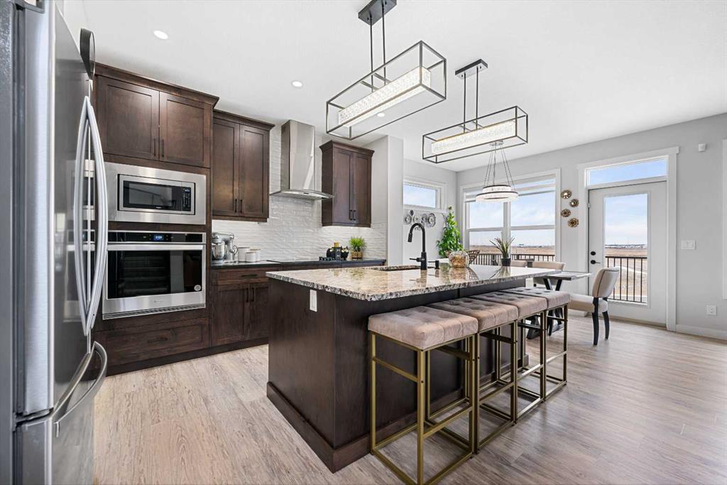 Walk-Out Basement | Stunning Views | Backing onto Pond & Walking Paths | Main Floor Bed & 4pc Bath | Chef\'s Kitchen & Spice Kitchen | Gas Stove | Granite Countertops | Kitchen Island | Large Deck | Accent Walls | Open Floor Plan | High Ceilings | Recessed Lighting | Gas Fireplace | Grand Living Space | Expansive Bedrooms | Upper Level Laundry | Upper Level Bonus Room | 2 Bed Basement Suite(illegal) | Separate Laundry | Full Kitchen | Patio | Massive Backyard | Front Double Attached Garage | Built-in Shelving for Seasonal Storage | Extended Driveway. Welcome to your dream home! 43 Homestead Close NE is nestled in a serene setting, this stunning 2,695 SqFt home backs onto a tranquil pond and scenic walking paths, ensuring no neighbors behind to disrupt your peace. Step inside to discover a luxurious open floor plan that seamlessly combines elegance and functionality. The main level features a spacious bedroom and a convenient 4-piece bath, perfect for guests or multi-generational living. Delight in the chef\'s kitchen, equipped with built-in stainless steel appliances, granite countertops, and a generous kitchen island with barstool seating. For culinary enthusiasts, a separate spice kitchen holds a gas stove and additional cabinet storage, making meal preparations a breeze. Entertain guests in the dedicated dining area, cozy up in the living room, or unwind in the family room featuring a warm gas fireplace. The statement accent wall adds a touch of sophistication, while the high ceilings and large windows throughout provide an abundance of natural light.