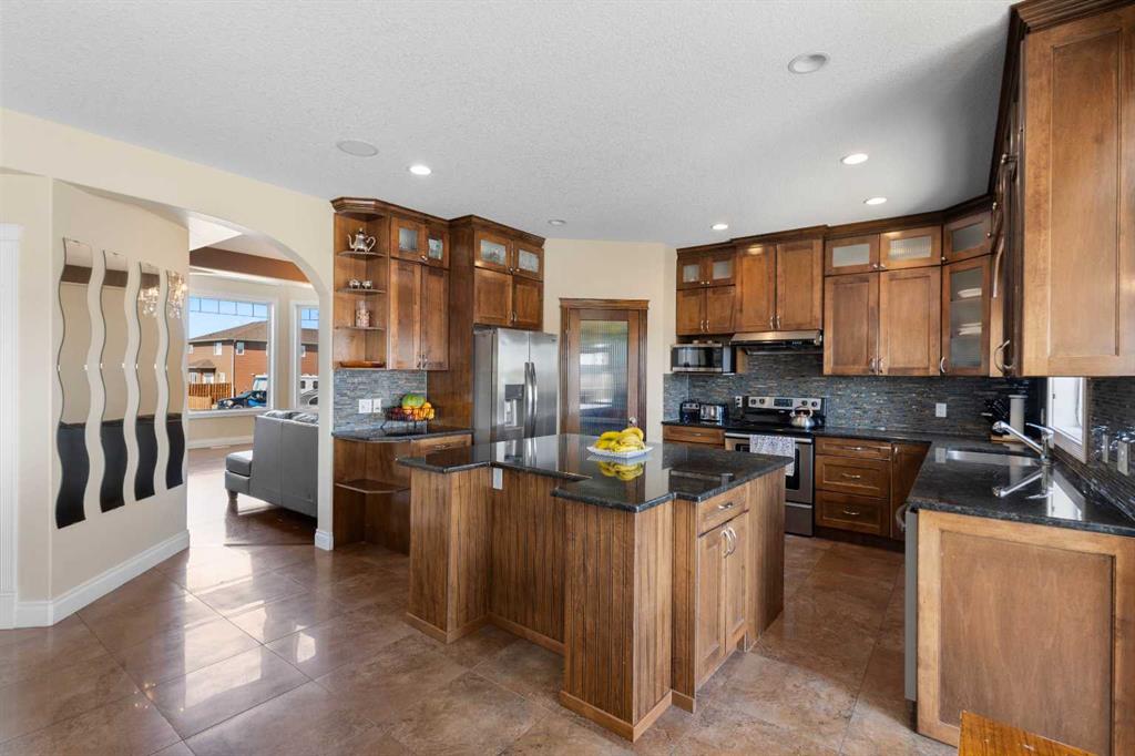 Welcome to this exceptional 0.25ac, 2-storey walk-out, perfectly situated on a quiet cul-de-sac and backing onto serene green space in the charming community of Langdon. Offering just under 4,000 sq ft of beautifully developed living space, this home features 6 bedrooms, 5 full bathrooms, and an attached triple car garage — ideal for growing families or those seeking luxury and comfort. Step into a grand foyer with soaring ceilings and expansive windows that flood the space with natural light. The open-concept design seamlessly connects the living room, chef’s kitchen, and dining areas, creating a warm and inviting atmosphere. The kitchen is a culinary dream, showcasing rich wood cabinetry, granite countertops, stainless steel appliances, a large central island, and a separate pantry. The adjacent dining nook is perfect for family meals, while the formal dining room offers ample space for hosting gatherings and celebrations. Upstairs, you’ll find four generously sized bedrooms, including two primary suites, each complete with private ensuites and walk-in closets. A versatile bonus loft provides the perfect setting for a family room, home office, or play area. The fully finished, illegal suited walk-out basement expands your living space with a large recreation room, a second kitchen, two additional bedrooms, and a full 4-piece bath — ideal for extended family, guests, or rental potential. Step outside to your private backyard oasis featuring a spacious deck and patio area, all overlooking peaceful green space with no rear neighbors. The triple car garage is complemented by a massive driveway, offering ample parking for multiple vehicles or an RV. Located just minutes from Boulder Creek Golf Course and with easy access to the mountains, this home is a dream for outdoor enthusiasts. Langdon offers a strong sense of community, fantastic local amenities, and incredible value — all while providing a quick, convenient commute to Calgary. This is luxury living at its finest — don’t miss your opportunity to call this beautiful property home. Book your private tour today!