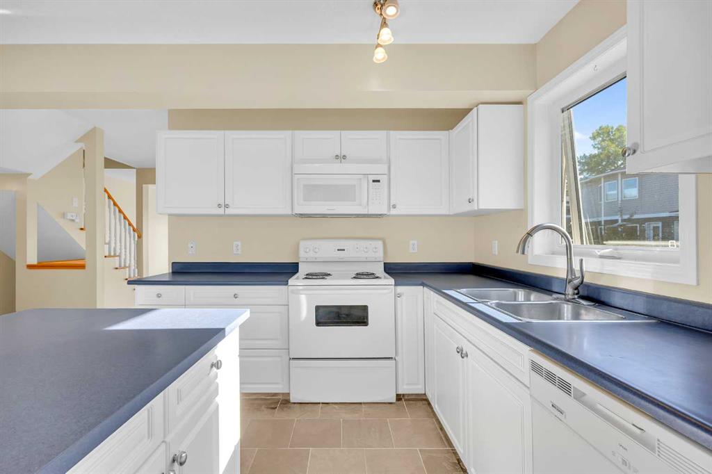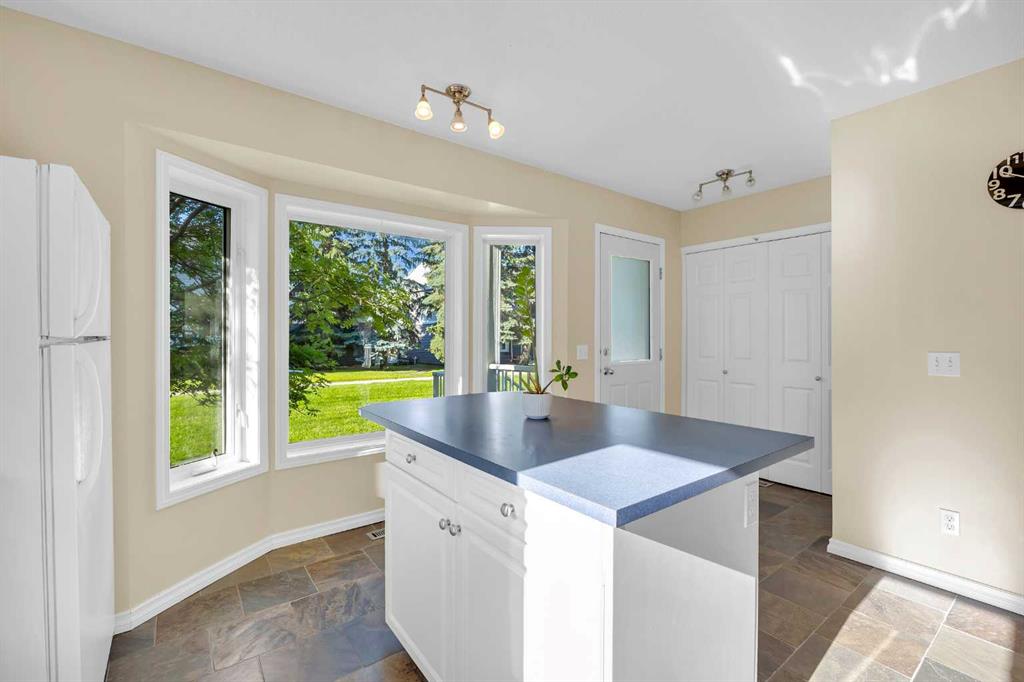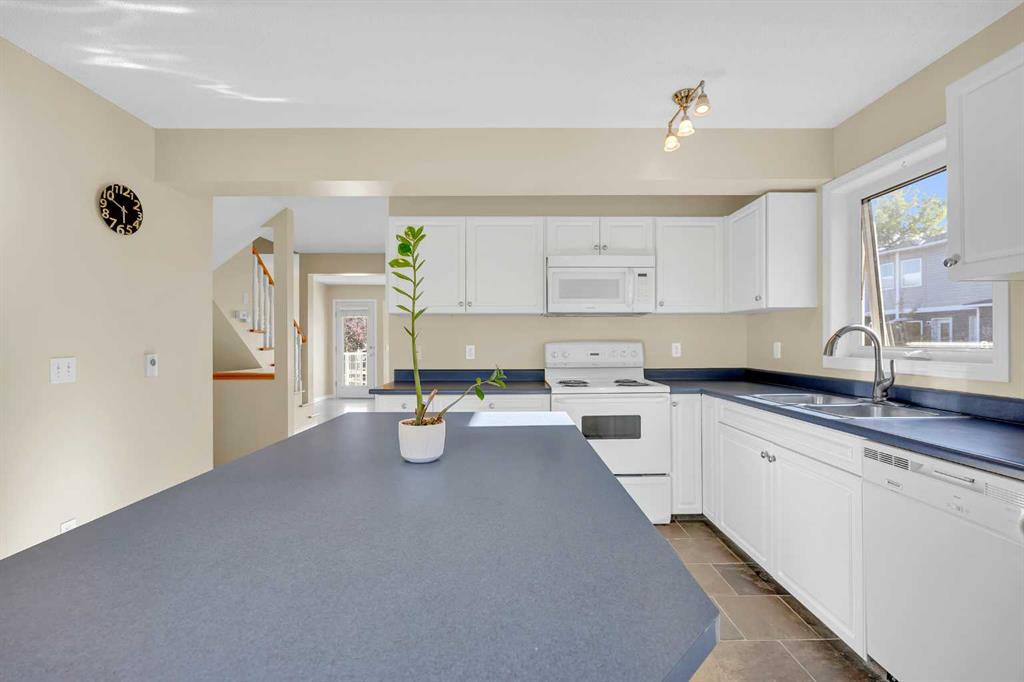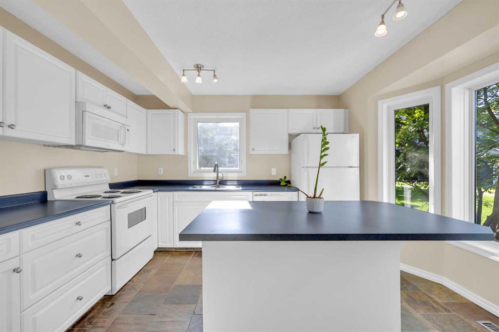 PRICE IMPROVED! This is home: a south-facing end-unit with almost 1600 sq ft of living space in Regal Park. Backing onto quiet greenspace within the complex, this updated townhouse won\'t last long. The gourmet kitchen with heated tile flooring includes a kitchen island that can comfortably sit three, windows that bring in a lot of natural light, and a convenient second entrance. The large open concept living room/dining room combo features hardwood and more sunlight from the south, plus a fireplace to cozy up to and access to your private, large balcony. Finishing the main floor is the laundry area and a two-piece powder room. The upper level hosts the two large bedrooms and an office/den space. The primary bedroom has a walk-in closet and four-piece ensuite - a warm space with a separate shower and soaker tub, and heated flooring. A double tandem garage with a separate utility room make use of every square foot. Well cared for by the owner of 13 years, this gem is in a quiet part of the complex, close to all amenities: dog parks, schools, pools, hockey rinks, tennis courts, transit, bike paths, and quick access to downtown Calgary. Regal Park is one of the most desirable inner city locations. Book your viewing today!
