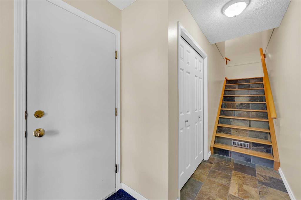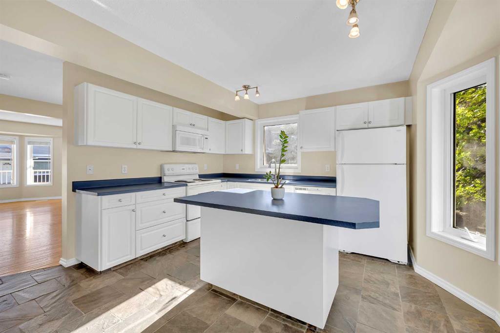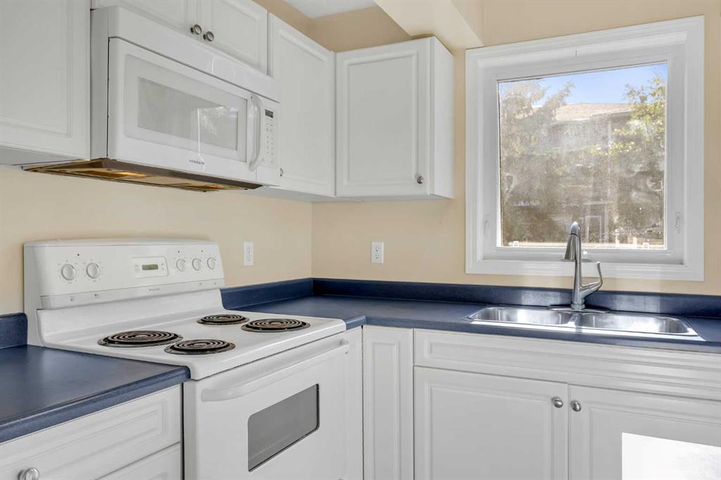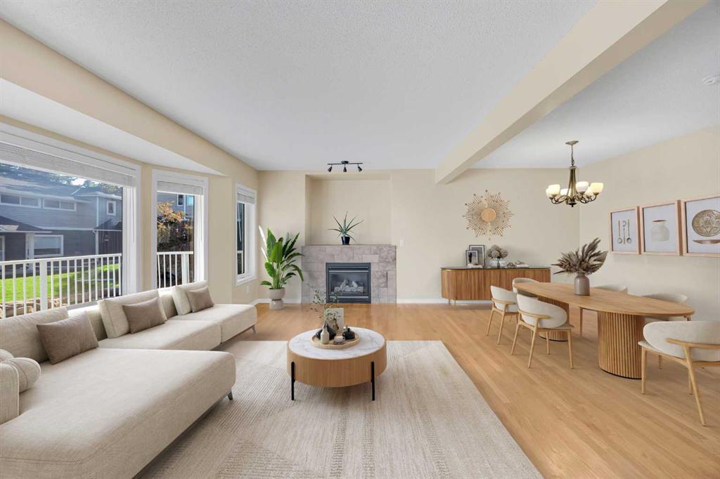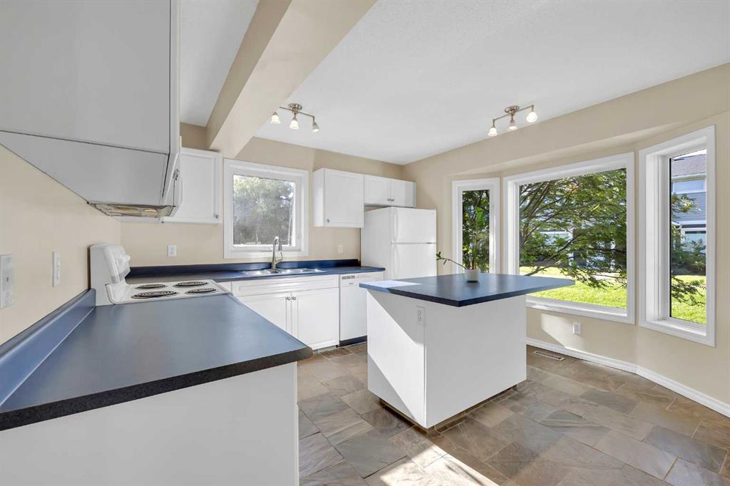 PRICE IMPROVED! This is home: a south-facing end-unit with almost 1600 sq ft of living space in Regal Park. Backing onto quiet greenspace within the complex, this updated townhouse won\'t last long. The gourmet kitchen with heated tile flooring includes a kitchen island that can comfortably sit three, windows that bring in a lot of natural light, and a convenient second entrance. The large open concept living room/dining room combo features hardwood and more sunlight from the south, plus a fireplace to cozy up to and access to your private, large balcony. Finishing the main floor is the laundry area and a two-piece powder room. The upper level hosts the two large bedrooms and an office/den space. The primary bedroom has a walk-in closet and four-piece ensuite - a warm space with a separate shower and soaker tub, and heated flooring. A double tandem garage with a separate utility room make use of every square foot. Well cared for by the owner of 13 years, this gem is in a quiet part of the complex, close to all amenities: dog parks, schools, pools, hockey rinks, tennis courts, transit, bike paths, and quick access to downtown Calgary. Regal Park is one of the most desirable inner city locations. Book your viewing today!