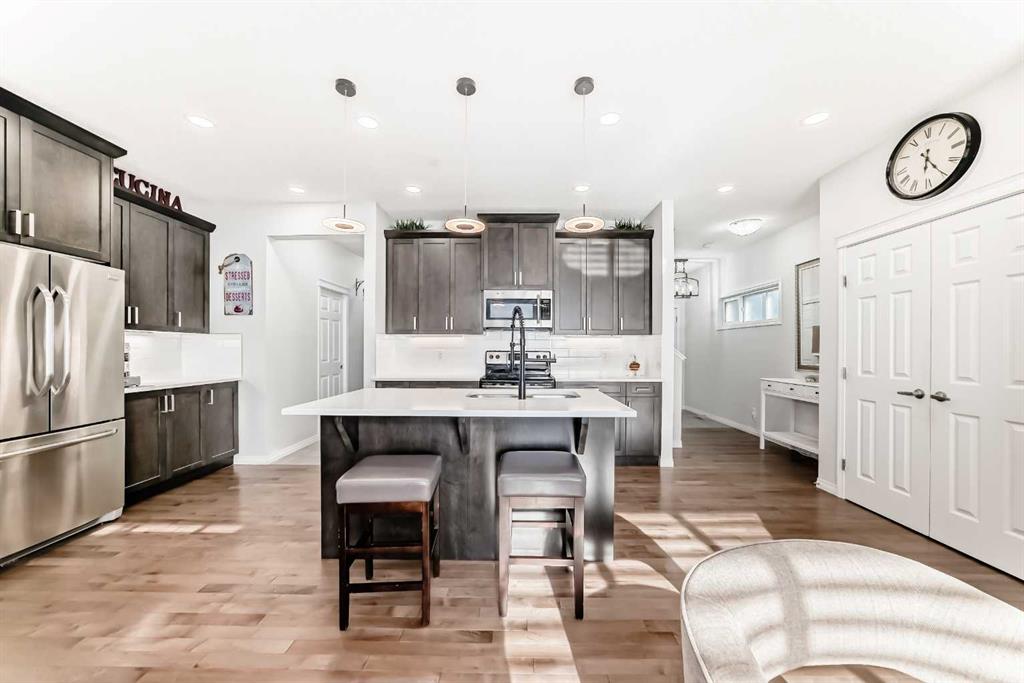Excellent opportunity to own this beautiful home in the desirable community of Walden. Located on a quiet street and close to green spaces and all amenities. The welcoming, spacious foyer effortlessly introduces you to the well-designed open floor plan with beautiful hardwood floor and 9ft. ceiling. The stunning kitchen features a huge island, quartz countertops, stainless steel appliances, rich espresso cabinetry, subway tile backsplash, along with generous counter and storage space.The Living room has large windows allowing the natural light to fill your home. Cozy up next to the gas fireplace with a tile surround and a wooden mantel. The spacious Dining Room opens onto a large deck with a pergola, perfect for barbecues and family gatherings. A 2pc. bathroom, corner pantry and a spacious mudroom with access to the Double Attached garage complete the main level. As you move up to the upper level, you\'ll find a office nook and spacious Bonus Room with beautiful accent wall. The Laundry Room is conveniently located adjacent to the bonus room with great storage and front load washer dryer. Impressive large master bedroom is a true retreat featuring a large walk-in closet, 5 piece ensuite with large tub, separate shower and dual sinks. The TWO additional Bedrooms are generously sized with one boasting a walk-in closet as well. The basement is unfinished with good layout offering a huge potential for customization. Entire house and carpet were professionally cleaned and ready for you to move in! Don\'t miss out on this beautiful family home.