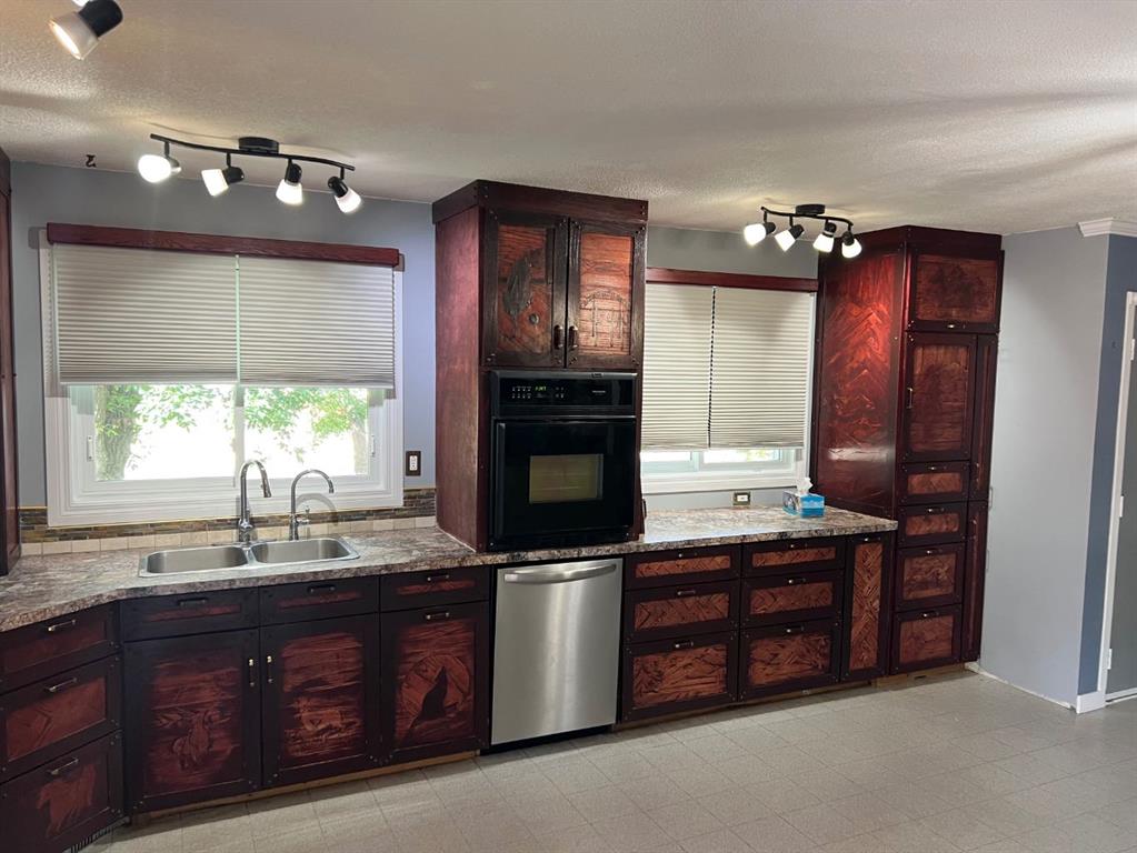 This bungalow in the welcoming town of Daysland sits on a spacious lot close to the school. Featuring a HUGE primary bedroom and bathroom, a large kitchen, main floor laundry and a fully finished basement with an additional bedroom and bathroom, perfect for extra living space or entertaining. Situated directly across from the school, it’s an ideal location for families. Outside, the property includes a large double garage as well as a separate single garage, providing ample parking and storage. With its generous yard and practical layout, this home is a great opportunity in a quiet, friendly community.