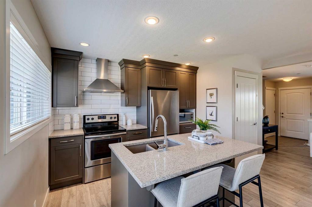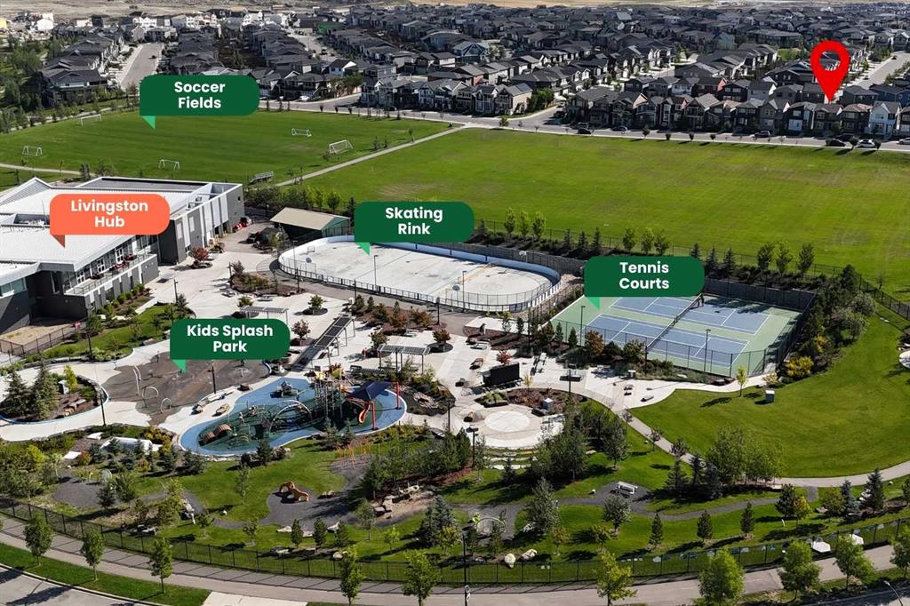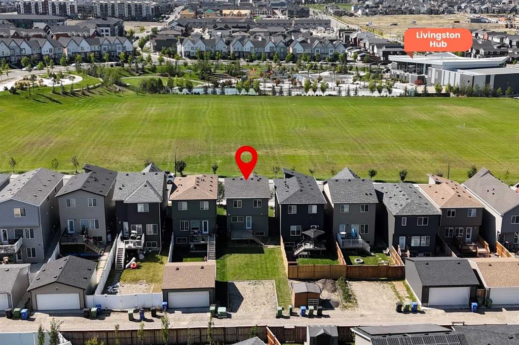 BEST PRICED SINGLE FAMILY HOME IN LIVINGSTON | ACROSS FROM GREEN SPACE & LIVINGSTON HUB | MODERN UPGRADES | Fall in LOVE with this beautiful 3-bedroom home in the vibrant community of Livingston. Designed for modern living, it combines style and comfort in a LOCATION FAMILIES WILL ADORE — directly across from a huge GREEN SPACE and steps from the incredible Livingston Hub with splash park, SKATING RINK, TENNIS courts, gymnasium and YEAR-ROUND ACTIVITIES for the whole family. Step inside and discover the OPEN-CONCEPT MAIN FLOOR featuring durable luxury vinyl plank flooring, oversized windows for TONS OF NATURAL LIGHT, and a welcoming living/dining space perfect for everyday life. The modern kitchen is the heart of the home, showcasing FULL-HEIGHT CABINETRY, stylish tile backsplash, pantry, STAINLESS STEEL APPLIANCES, and an ISLAND WITH EATING BAR. Just off the kitchen, the bright dining area is the perfect spot for family dinners or cozy weeknight meals. From here, enjoy easy access to the BACKYARD DECK, making indoor-outdoor living a breeze. A convenient 2-piece bath completes this level. Upstairs, the PRIMARY SUITE offers a private 4-piece ensuite and walk-in closet, while two additional bedrooms and another full bath provide space for kids, guests, or a home office. The unfinished lower level with bathroom rough-in is ready for your vision — whether you’re dreaming of a playroom, gym, media lounge, or future in-law retreat. Outside, the large backyard with parking pad offers space to relax, play, or even build your future garage. Livingston is a MASTER-PLANNED COMMUNITY created for families to thrive. With the 35,000 sq ft Livingston Hub, plus over 200 acres of parks, trails, and playgrounds, there’s always somewhere to play, gather, and explore. Future schools and a town centre make life even more convenient, while QUICK ACCESS to Stoney and Deerfoot Trail means the rest of the city is never far away. Get into home OWNERSHIP and STOP paying RENT or buy your first INVESTMENT PROPERTY at this incredible value!