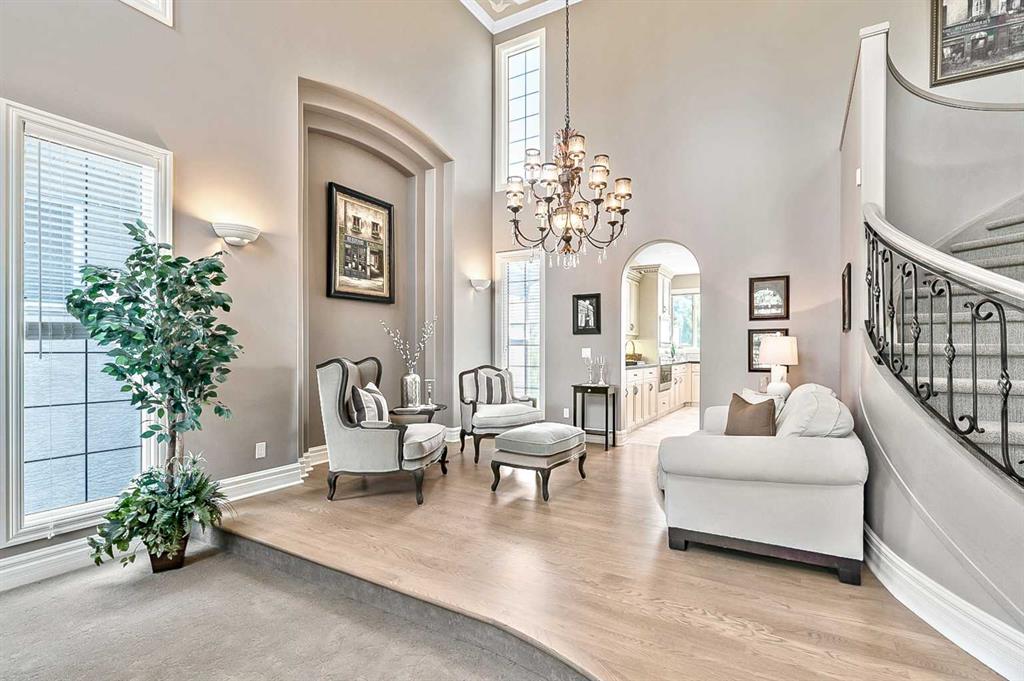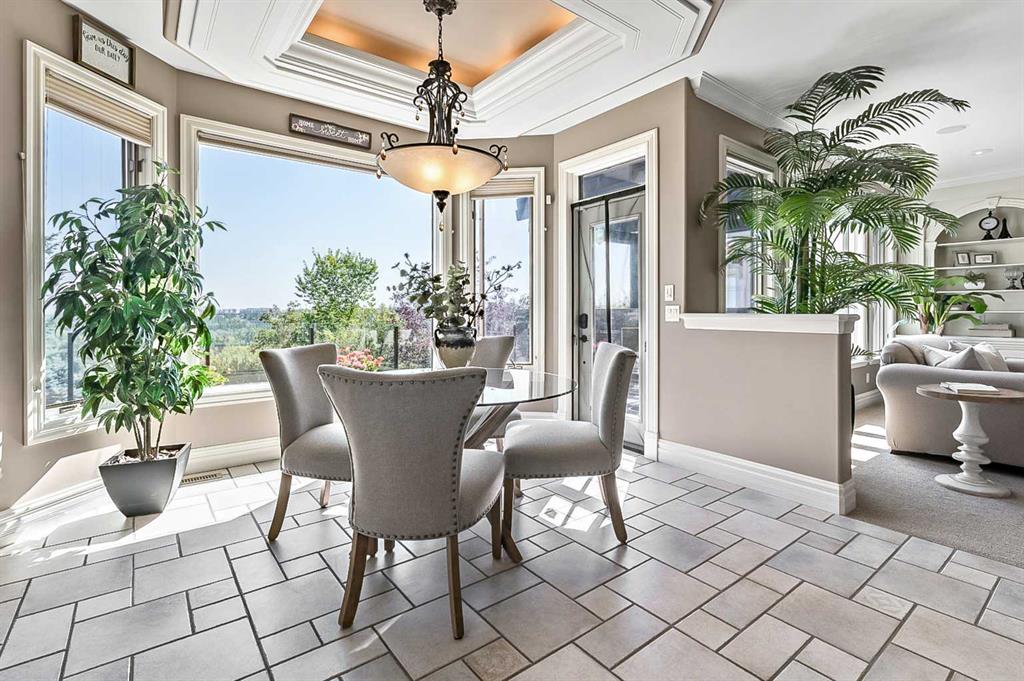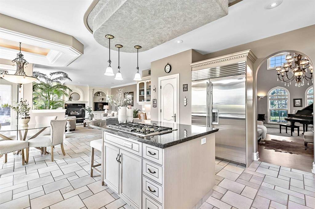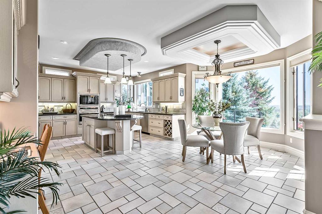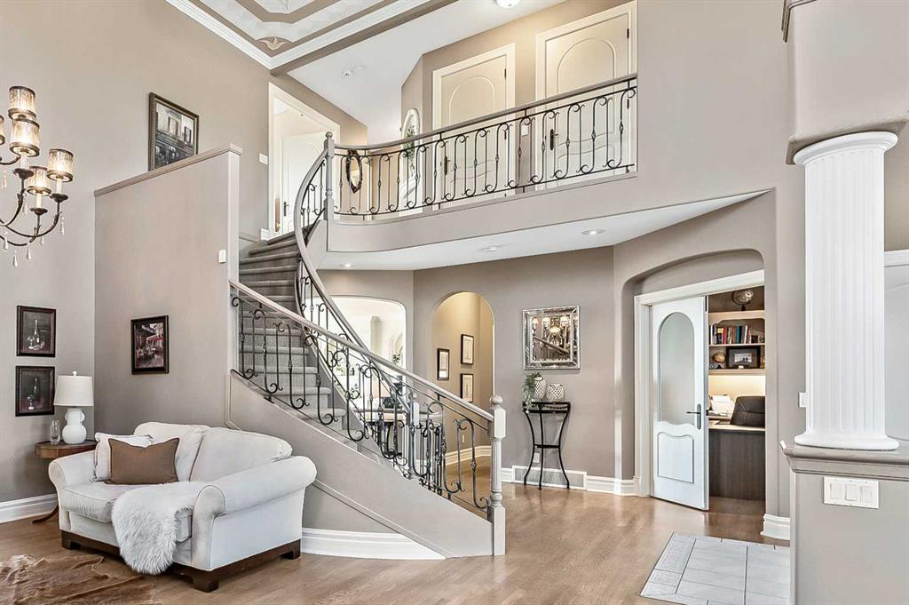 Views, Views!! Perched magnificently upon the distinguished ridge of Canyon Meadows Estates, this extraordinary architectural masterpiece commands breathtaking panoramic views of the pristine Fish Creek Park wilderness. This meticulously crafted 3,003 square foot custom residence exemplifies sophisticated design sensibilities and uncompromising attention to detail throughout its thoughtfully conceived floor plan. Upon crossing the threshold, guests are welcomed by a dramatic spiral staircase ascending beneath soaring sixteen-foot ceilings adorned with exquisite hand-crafted details. Gleaming hardwood floors flow seamlessly through the sunken living room, expansive dining area, and private study, creating an atmosphere of refined elegance. The culinary epicenter showcases professional-grade appointments including a commanding oversized island, custom cabinetry, lustrous granite surfaces, and an exceptional suite of premium appliances featuring Subzero refrigeration, Wolf combination oven and gas cooktop, plus Miele dishwasher. The adjoining breakfast nook and well-appointed pantry complete this chef\'s sanctuary. The generous family room captivates with its gas fireplace, bespoke built-in cabinetry, and abundant natural light streaming through strategically positioned windows. The upper-level houses four spacious bedrooms, including a secluded primary suite overlooking the spectacular views. The spa-inspired five-piece ensuite features dual vanities, jetted soaking tub, separate shower, and an expansive walk-in closet with adjustable custom organization systems. The walkout lower-level transforms into an entertainer\'s paradise, complete with radiant floor heating, dedicated fitness room, 5th bedroom, sophisticated wet bar, billiards area, secondary family room, and abundant storage. Direct access leads to the private patio sanctuary. The triple heated garage boasts twelve-foot ceilings accommodating automotive lifts, epoxy flooring, floor drainage, and integrated storage solutions. The meticulously landscaped grounds feature mature specimen trees and an outdoor culinary station with dedicated refrigeration, all positioned to capture optimal southern exposure for year-round enjoyment. Home shows extremely well with pride of ownership!