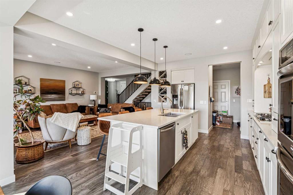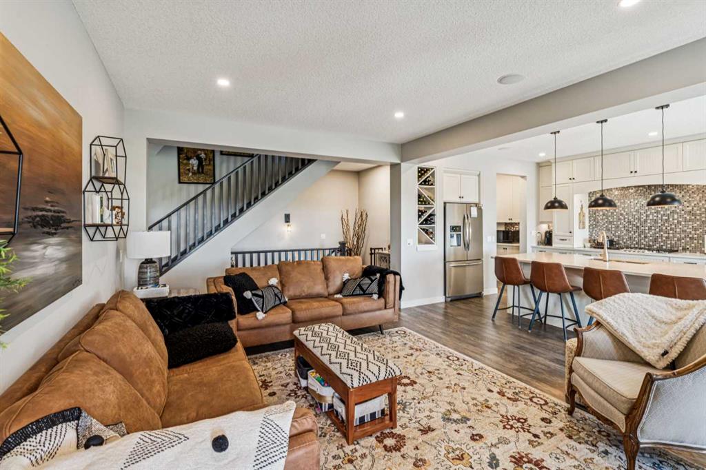 The open-concept main living area is designed for both entertaining and everyday comfort. The spacious family room flows seamlessly into the dining area and showstopping kitchen, all framed by large windows that capture stunning prairie views.