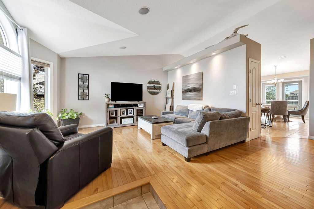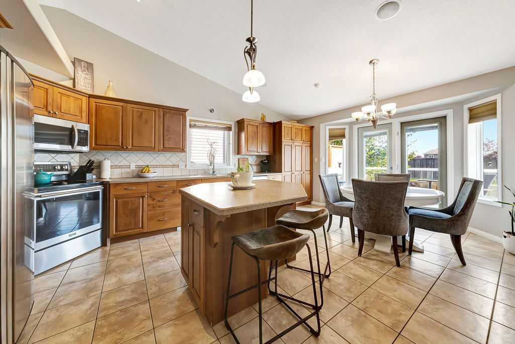 Welcome to this beautifully designed bungalow tucked on a quiet, sought-after street in Lakeside Estates, backing a private berm with no rear neighbours—offering the peace, privacy, and space you’ve been looking for. This home checks all the boxes with RV parking, a dream garage/man cave, and a functional layout that suits every stage of life. Step inside to a warm yet modern palette, soaring vaulted ceilings, and an open-concept kitchen featuring a pantry, island, and flowing dining area perfect for everyday living or entertaining. The upper level includes three bedrooms, including a spacious primary suite with walk-in closet and ensuite, while the lower level impresses with high ceilings, a large family room with gas fireplace, two additional bedrooms, full bathroom, laundry room, and tons of storage. This one is truly move-in ready with all the extras—and located in one of the most desirable communities of the city. It is only steps from schools and walking trails that connect to Bud Miller. Don\'t miss this well curated bungalow home.