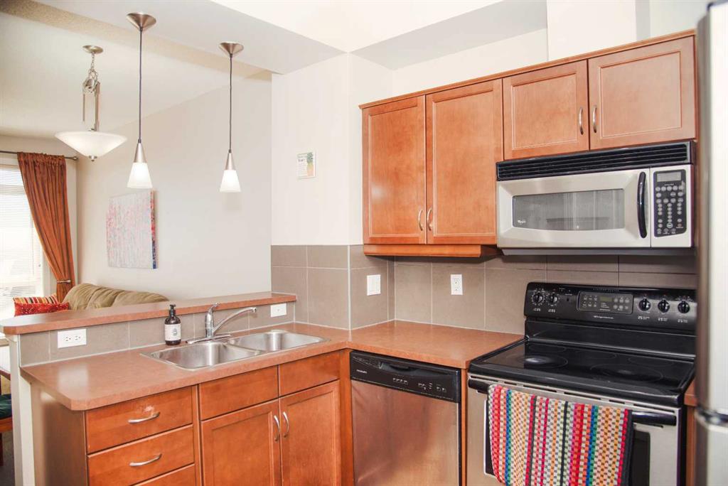 Modern Kitchen: Maple cabinetry, ample storage, a great-sized pantry, and stainless steel appliances by Frigidaire & Whirlpool.
