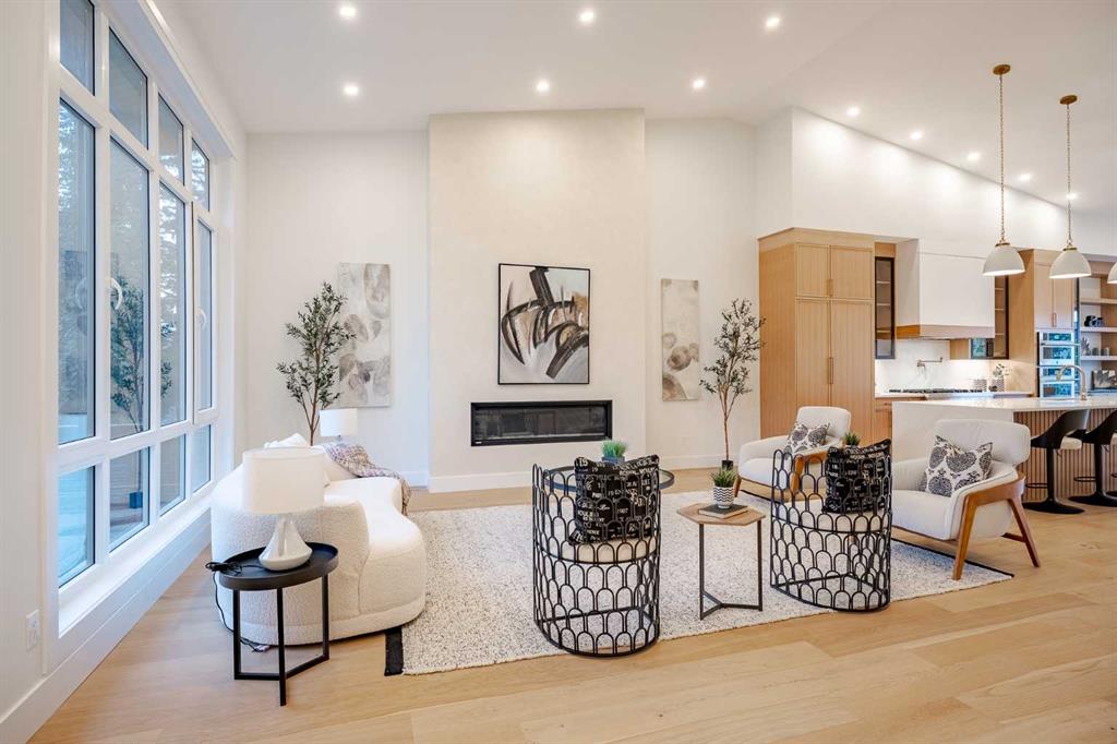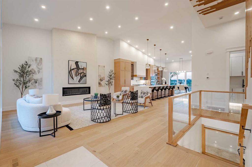 Here it is, a once in a lifetime opportunity to own a ~2,400 sqft bungalow that exemplifies the pinnacle of luxury living—flawlessly designed and masterfully built. Located in coveted St. Andrews Height situated on a large lot with stunning views of downtown Calgary, this home defines luxury while encapsulating timeless elegance, making it an absolute masterpiece. The luxurious presence of this home is instantly exemplified by the stunning curb appeal, with a truly unique modern farmhouse look, featuring stone and wood accents, all highlighted by an exposed concrete pathway leading to your grand entryway. Upon entering, your eyes are drawn to the jaw dropping 12-feet ceilings on the main level, featuring a grand 16-foot vault. The large living area is complete with an elegant venetian plastered gas fireplace and a large window showcasing your stunning downtown views! The main level of this grand residence is filled with natural light with no outdoor noise, thanks to the TRIPLE PANE ‘Tilt and Turn’ European windows. The designer kitchen encapsulates this house as an entertainer\'s dream with its stunning cabinetry featuring REAL oak cabinets, glass cabinetry, 14-foot island, and stunning paneled JennAir appliance package, perfect for any chef! Next to the kitchen you have a large dining area that features a stunning European style patio slider that provides an abundance of light and leads directly to the deck and rooftop patio, encouraging a seamless indoor/outdoor lifestyle. Stepping back inside, you have a large mudroom and a dedicated pantry room ensuring no shortage of storage. The main floor continues to wow with a central staircase, featuring a glass railing and custom oak paneling acting as the true centerpiece of this home. This level also features a dedicated laundry room and a stunning 3-piece common bathroom with a custom shower. Down the hall you are welcomed to one of TWO primary bedrooms. The first primary bedroom features a large closet and a 3-piece bathroom with a custom-built shower and heated flooring. Moving to the second primary bedroom the wow factor continues with a custom walk-in closet, a stunning 5-piece bathroom, with dual vanities, a free-standing tub, heated flooring, a large custom shower, and a stunning chandelier over the tub. This room also includes a lookout patio – perfect for that morning coffee! The main level is complete with a third bedroom, making this home perfect for families of all sizes. Like the main floor, the basement of this home is an entertainer\'s dream! Starting with the open Rec Room featuring a large entertainment unit and a large wet bar. The lower level is complete with 2 additional bedrooms and a 4-piece bathroom. The fully finished triple car garage features a roof top patio, transforming the backyard into an oasis, perfect for hosting. This home had no item overlooked and comes with new home warranty to put your mind at ease. Luxury, Functionality, Location and Unbeatable Value!