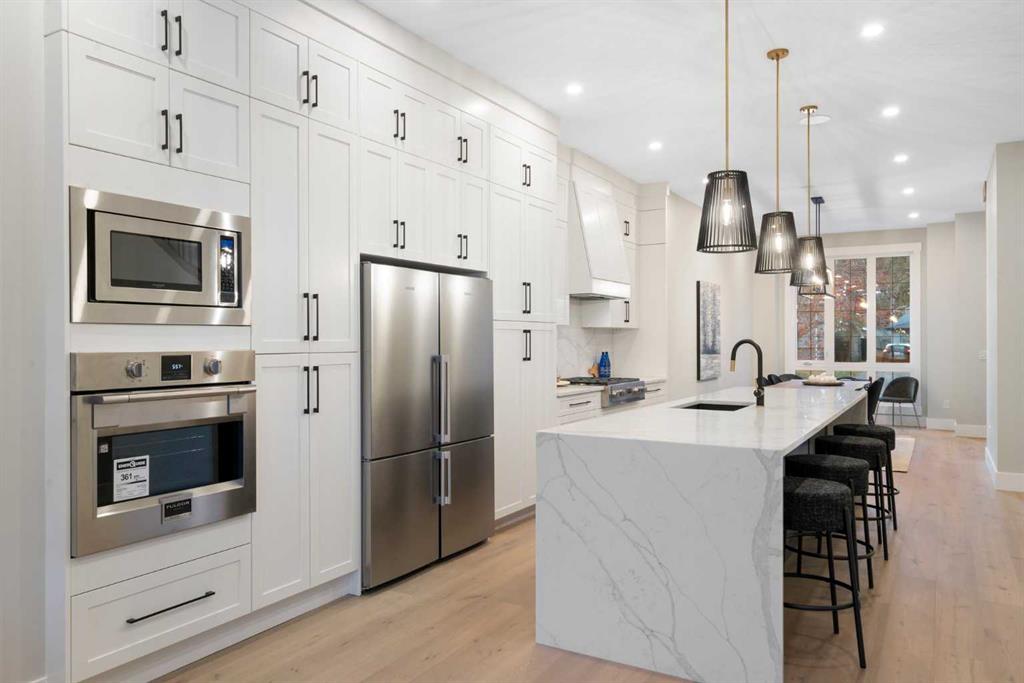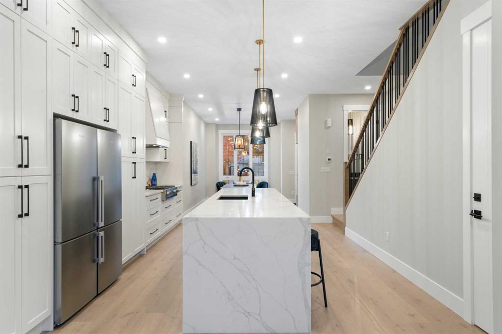 The fully finished basement offers versatile space suited for various lifestyles, with an innovative option to create a legal basement suite by opening a partition wall—perfect for generating rental income or accommodating multi-generational living. Alternatively, the space can be customized into a spacious, open-plan area by removing drywall and adding a railing, providing flexibility to suit your needs. The basement features a generous bedroom, a fully equipped kitchen, a cozy living and dining area, and a sleek 4-piece bathroom.