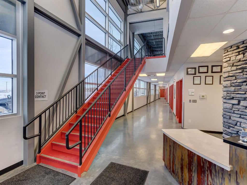 Ideal modern upstairs commercial lease space available. Offering approximately 4487 sq. ft. located in a professional well designed building in the Industrial area on north side of Lloydminster. The layout includes seven private offices, a boardroom, a training room, and washrooms, making it ideal for professional or administrative use.