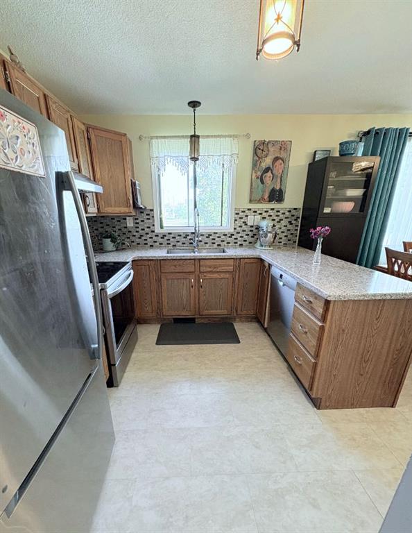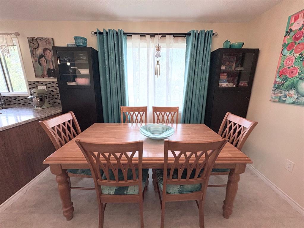 Step inside to find a bright and inviting layout featuring new flooring throughout, large windows that flood the home with natural light, and a spacious main floor laundry room. The kitchen hosts timeless oak cabinetry, updated countertops and backsplash, and stainless steel appliances, creating a warm and modern space for cooking and gathering.