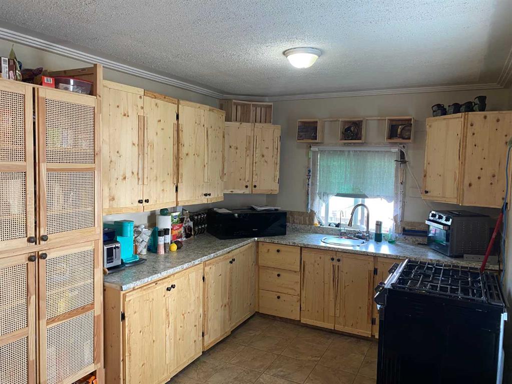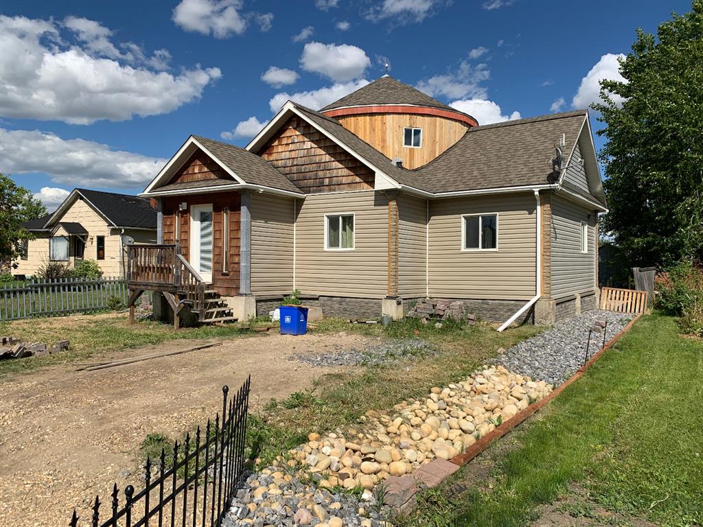 This unique, one of a kind home is only 18 yrs old, totally renovated and modern. The unique shape, and domed roof will always be the center of attention. You have brand new kitchen, including all appliances. Lots of cupboards and counters. You get new deck, new hardwood floor in the living room, new laminate in the bedrooms, and beautiful drop ceiling to cover all pipes. All pipes underneath are insulated and there is heat under the home. The Main floor offers 3 large bedrooms, main floor laundry, beautiful entry, and open dining area to living room, with wood stove in the center. There is beautiful tile work on the ceiling and back of the wood stove, as well as beautiful tile work in the entry and bathrooms. The Master also boasts an en suite, and walk through closet, as well as a second closet. Upstairs you have a great circular family room or use it for whatever you want. The Main bath has a place for stackable washer and dryer. You also get hot water on demand to enjoy your showers with. This is the perfect home for your family, and Wanham is a great place to live. Book your viewing today