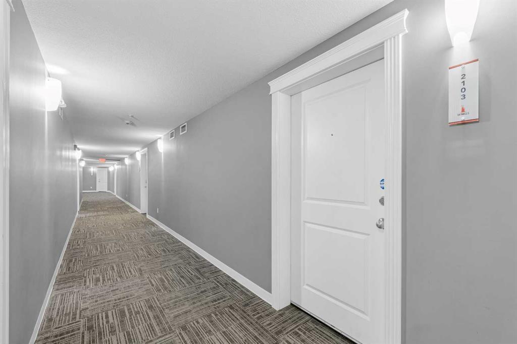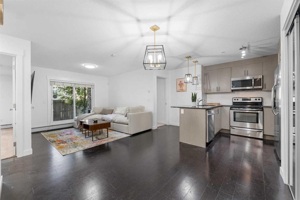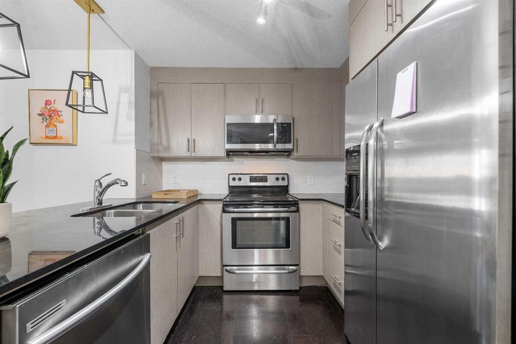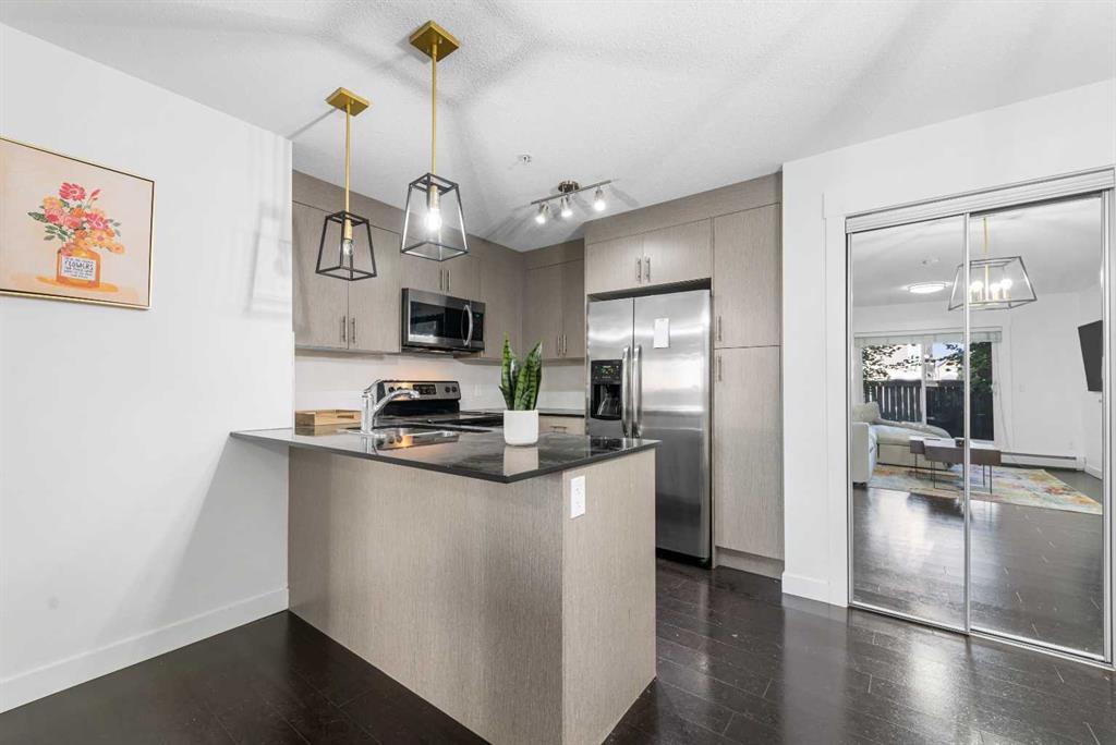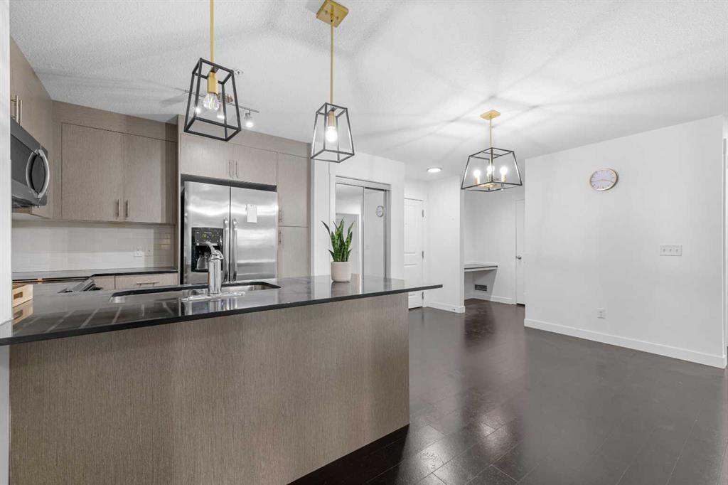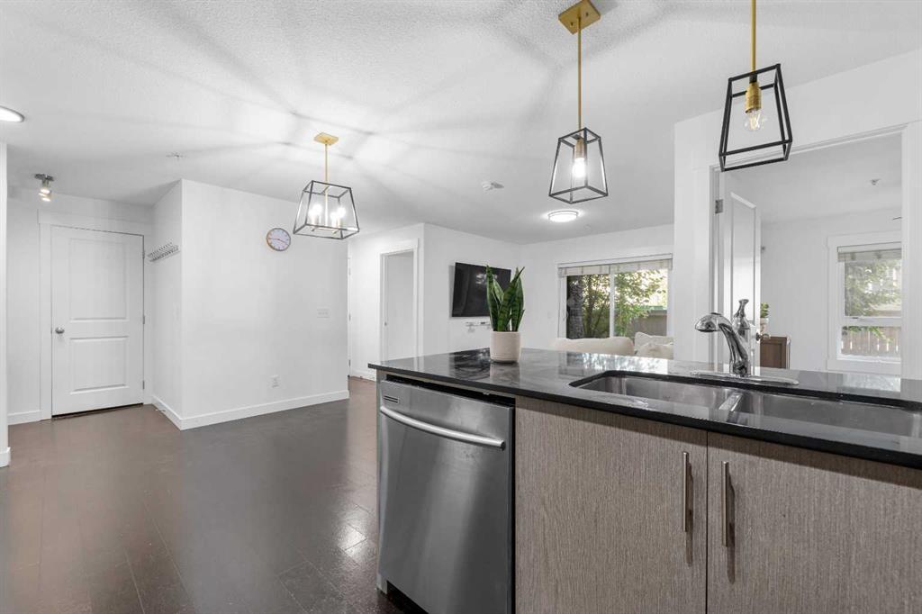 **Quick Possession - Move-in Ready ** Main Level | Concrete Patio | Secure Entry Building | Titled Underground Parking | 2 Bedrooms | 2 Bathrooms | In Unit Laundry| Open Floor Plan | Granite Countertops | Stainless Steel Appliances | Bright with Natural Lighting | Built-in Work Station/Desk | Great Living Space | Incredible Location | Visitor Parking | Central Courtyard in Condominium Complex | Near All Amenities & Transit & Schools. Welcome to your gorgeous main level condo with a private East facing patio. This 2 bedroom unit has high ceilings, great natural light and ample living space. The door opens to an open floor kitchen, dining and living rooms. The kitchen is outfitted with granite countertops, full height upper cabinets, stainless steel appliances and a breakfast bar for barstool seating. The open concept living provides you with plenty of space for a dining table to fit your needs. The living room is paired with sliding glass doors that lead directly to your concrete patio where you can enjoy outdoor living in the summer months. The 2 bedrooms are located on either side of the living room providing each with more privacy. The primary bedroom has a walk-through closet that leads to your private 4pc ensuite bath. The second bedroom has a good size closet and is near the main 4pc bath with a tub/shower combo. This unit has in suite laundry! Off the foyer is a built-in desk/work station making a work-from-home lifestyle easy here. Also, for all your seasonal needs, this property has its own storage. Your titled underground parking stall gives you year round weather secure parking! Entry to this building is with a buzzer code for guests or key fob for yourself. Visitor parking is readily available for when you have friends and family over. The location can\'t be beat; the CBE Prairie Sky School its steps away and so are all shopping amenities. Hurry and book your showing today!