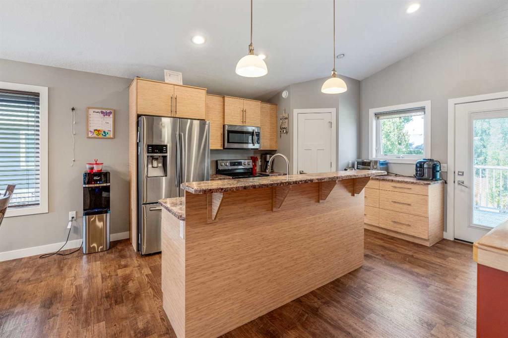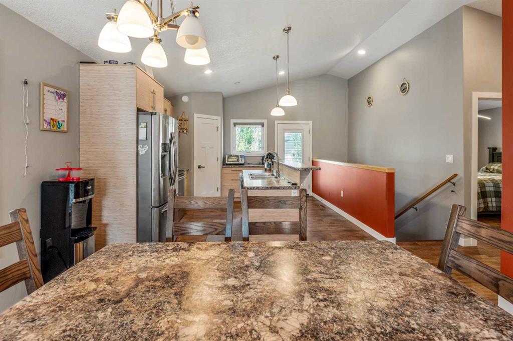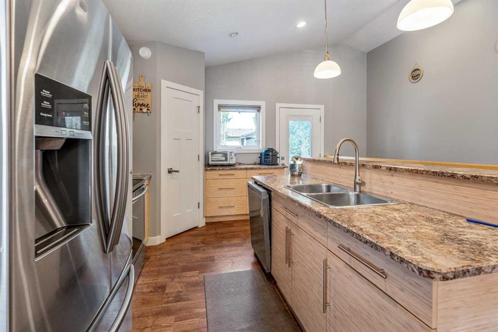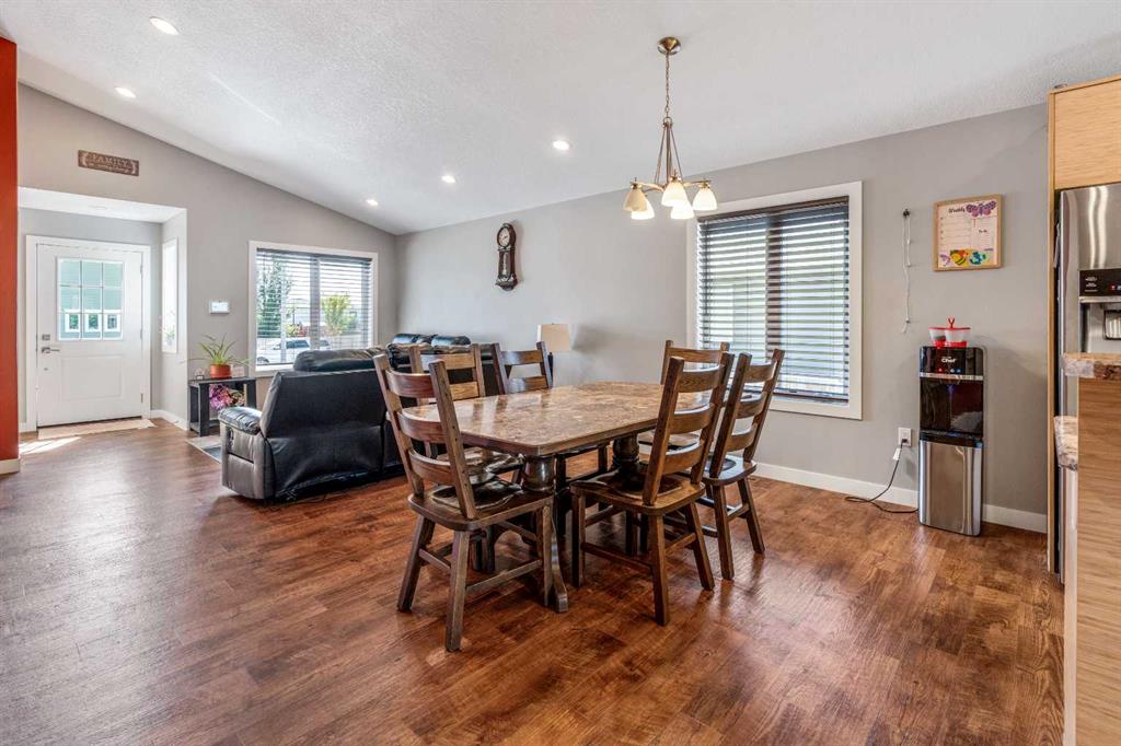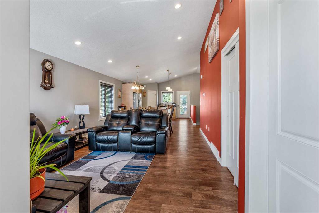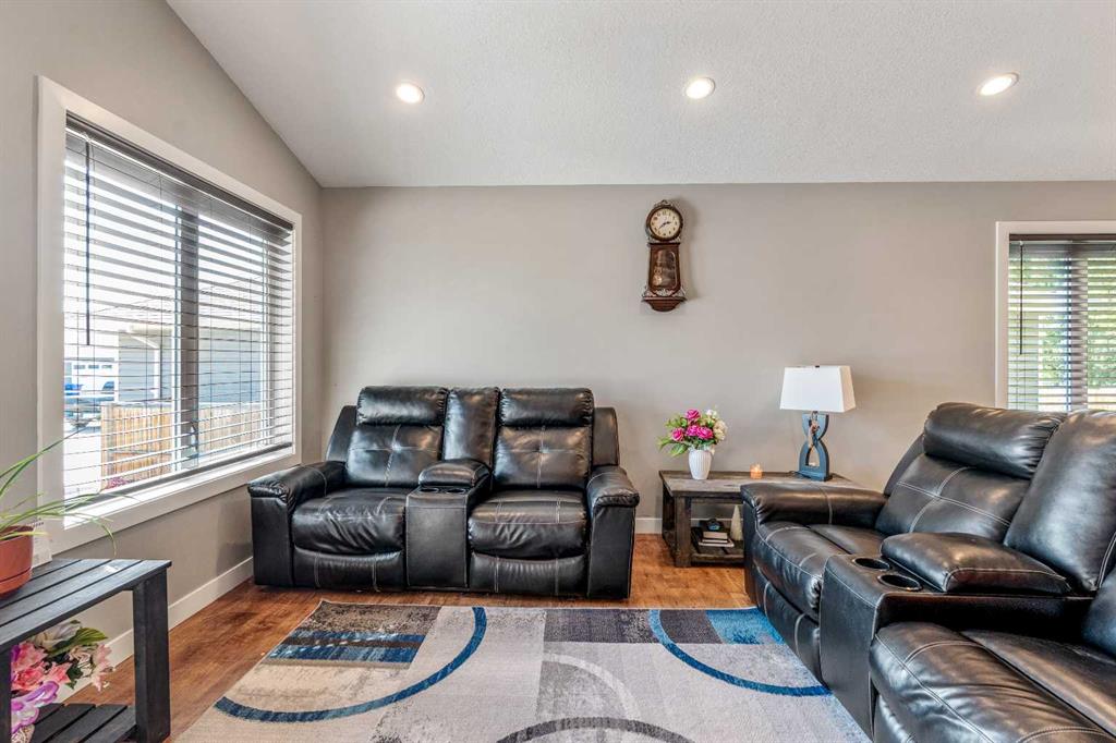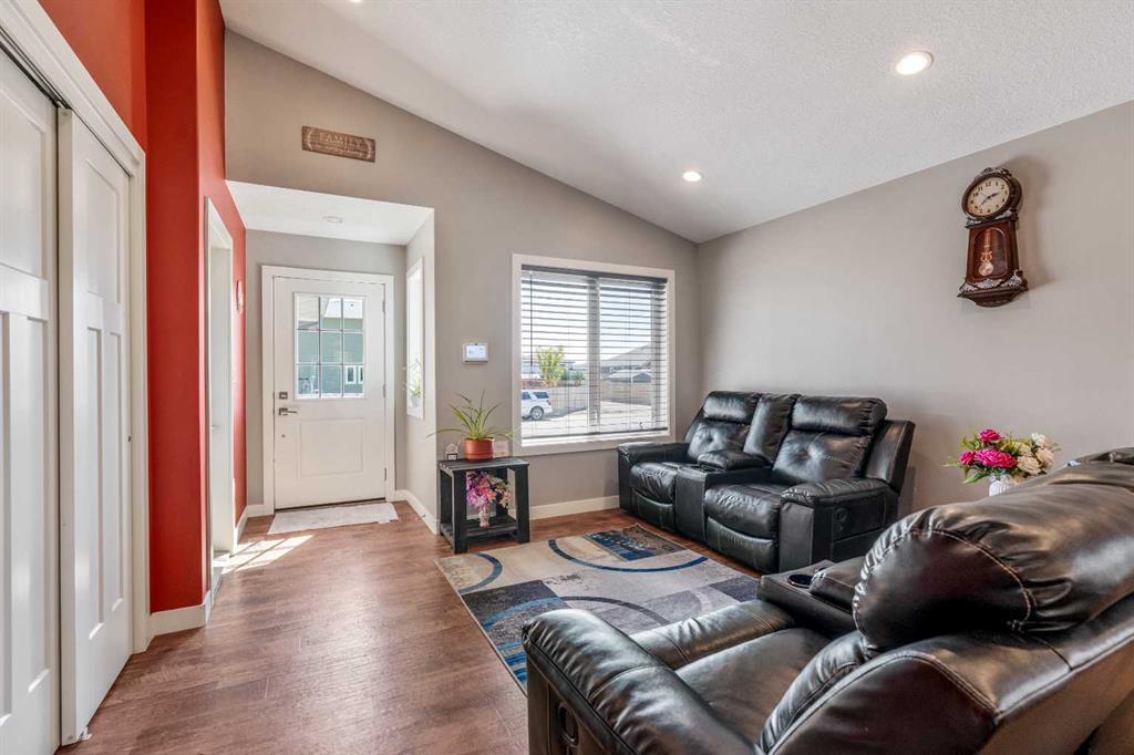 Welcome to this well-maintained home located in a newer neighborhood in Bow Island! Situated on a landscaped and fully fenced lot, this property features a super single attached garage and a gravel pad for convenient RV parking. Inside, the main floor boasts vaulted ceilings, pot lights, and stylish vinyl plank flooring throughout. The spacious kitchen offers, ample cabinetry, a pantry, and modern appliances—perfect for both everyday living and entertaining. The finished basement includes a large bedroom, a dedicated office space, and a 3 piece bathroom. Additional highlights include a high-efficiency furnace with A/C and hot water on demand system, ensuring year-round comfort and energy savings. A fantastic opportunity to own a quality home in a growing community—don’t miss out!