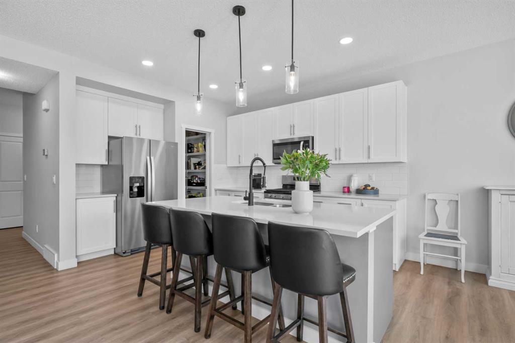 BEST PRICED Detached Home with Double Attached Garage in all of Belmont by FAR! If you\'ve been waiting for an unbelievable deal on a gorgeous, newer home.... Your wait is over. This is the ONE! Designed with families in mind, every detail of this home blends comfort, style, and functionality. Step inside to warm vinyl plank flooring that flows across the open main floor. The timeless kitchen is a chef’s dream with crisp white shaker cabinets, subway tile backsplash, quartz countertops, and stainless steel appliances. A spacious walk through pantry leads directly to the mudroom and garage - perfect for busy family life. The living room is anchored by a cozy gas fireplace where memories are made, while the sunlit dining area offers views of the backyard retreat. Your SOUTH facing, sunny outdoor oasis awaits! Unwind in the hot tub, entertain on the deck, shoot hoops on the basketball court, or simply enjoy the meticulously maintained lawn. Low-maintenance front yard ensures curb appeal year round without the extra work! Upstairs, discover four generously sized bedrooms, most with walk-in closets, including a primary retreat with a private 3 piece ensuite. Larger upper level bedroom could EASILY be utilized as a bonus room, or remove one wall for a very large secondary living area! This versatile floorplan suits every families needs, whether it\'s 4 bedrooms you need, 3 bedrooms + an office, or 2 bedrooms and a LARGE bonus room - the possibilities here are endless! A 4 piece bathroom and a great sized laundry room complete the upper level. The fully developed lower floor features two additional bedrooms which could EASILY be reverted back to a Wide Open Recreational Area. Lower level is complete with a third full bathroom and a small den for exercise or storage. Belmont is a rapidly growing community offering convenience today and exciting plans for tomorrow, with nearby amenities, two future school sites, and a planned community hub with a rec center and library that has already broken ground just blocks away. This home is more than a place to live—it’s where your growing family will absolutely thrive. Book your private showing today!!