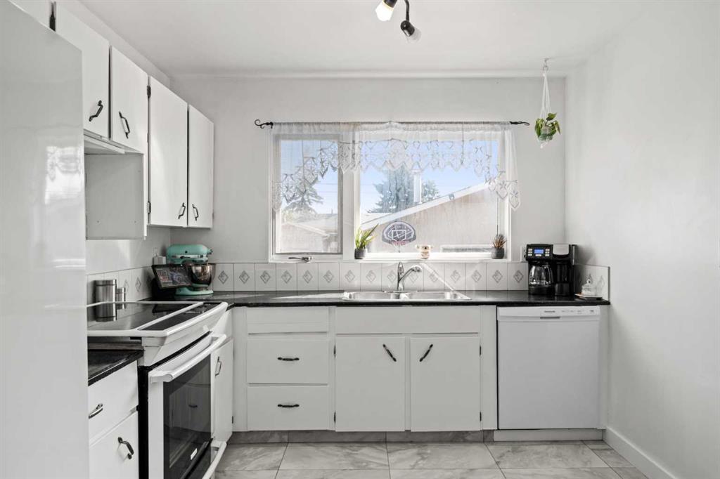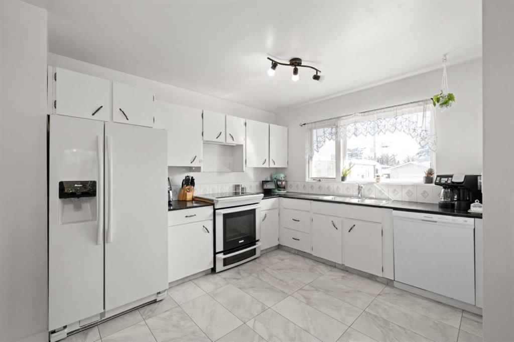 Welcome to this lovely air-conditioned 4-bedroom bungalow in Marlborough, which features a detached heated oversize garage (22x24ft) and RV parking! Step inside through the tiled entrance into a bright living room with laminate flooring and a newer window giving lots of natural light and views over the front yard. The large dining room features knockdown ceilings and is perfect for family meal times! The kitchen, boasts a tiled floor, upgraded stove, white cabinetry and appliances, plus a large window overlooking the expansive backyard. The three main-level bedrooms all feature laminate flooring, including a good-sized primary bedroom with a 2-piece ensuite. The renovated family bathroom highlights beautiful tile work and a relaxing jetted tub. The fully developed basement offers a sizable bedroom #4 with a large window, a great family/games room complete with an electric fireplace and dry bar. Completing this level is a spacious laundry room with front-loading washer and dryer and a basement bathroom that features a bathtub. This bathroom was in the process of being renovated so the rough ins are there and it is awaiting your remodel ideas. Additional updates include a new hot water tank and a 3-year-old furnace. This great property has a large yard with a spacious concrete patio—perfect for outdoor entertaining. There is convenient RV parking accessed from the rear lane and a heated, oversize detached double garage. This home has been beautifully cared for an is awaiting its new owners. Situated near schools, parks and shopping centres, this home perfectly blends comfort and functionality, ready for you to move in and enjoy. View 3D/Multi Media/Virtual Tour!