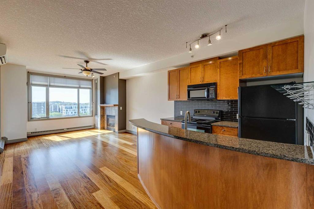 Welcome to Pontefino II - a stylish inner-city apartment nestled in the heart of one of Calgary’s most sought-after neighborhoods! This bright and beautifully positioned unit boasts sunny south-facing exposure, overlooking a serene park with stunning downtown and mountain views. Step out onto the spacious balcony, the perfect spot to relax and take in the cityscape. Inside, you\'ll find a thoughtfully designed layout with high ceilings and laminate flooring throughout the main living area. The open-concept kitchen features full-height cabinetry and a large island, ideal for both entertaining and everyday living. The primary bedroom offers exceptional functionality with a custom built-in organizer and bedframe, plus direct access to the 4-piece bathroom through a dual-sided closet for added convenience. Enjoy the best of urban living just steps from Calgary’s trendiest spots, including Shiki Menya, Blue Star Diner, OEB, Bike and Brew, Village Ice Cream, and more! Only a 5-minute bike ride to the Downtown Core and the Bow River Pathway system, this is city living at its finest. Don’t miss this incredible opportunity. Call your favorite realtor to book a private viewing today!