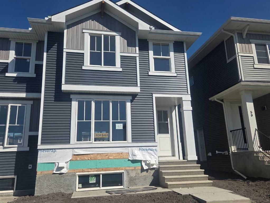 END UNIT, SIDE ENTRY TO BASEMENT. HOME IS UNDER CONSTRUCTION, APPROX 30 days TO COMPLETION. , DOUBLE DETACHED GARAGE, DECK, FENCED AND LANDSCAPED, NO CONDO FEES. PICTURES ARE OF SAME MODEL, NOT SUBJECT PROPERTY. Welcome to the \"St. Andrews\" townhome, by Award winning, Master Builder, Douglas Homes Ltd. From the front covered porch, the entry opens onto the spacious great room with 9ft ceiling, electric fireplace, and gleaming hardwood floors throughout the main floor. The aspiring chef will appreciate the well planned \"island\" kitchen. From the upgraded 42 inch, soft close cabinets, to the gorgeous quartz countertops, everything is within easy reach. The sparkling stainless steel fridge, the glass top, self cleaning electric range, dishwasher, and over the range microwave/hoodfan are all just an arms length from the kitchen sink. Opposite side of the island, provides a convenient pantry, and desk with upper cabinet for all those recipe books you will collect. The spacious dining area features a large picture window looking out upon the back yard with room for the kids to play, with a rear entry door to the deck for those summer bbq\'s. Here also is a 2pc powder room for your guests convenience, and perhaps the kids hurried need. Upstairs includes 2 good sized secondary bedrooms, a 4pce bathroom with quartz vanity and tile floors, a convenient upstairs laundry, and a spacious primary bedroom with large upsized window and ensuite bath, with walk in shower, with glass front, tile floor and again a quartz vanity. The full basement provides rough in plumbing for a future bath, one window for future bedroom, and enough space remaining for a spacious future family room if you decide your family needs room to spread.