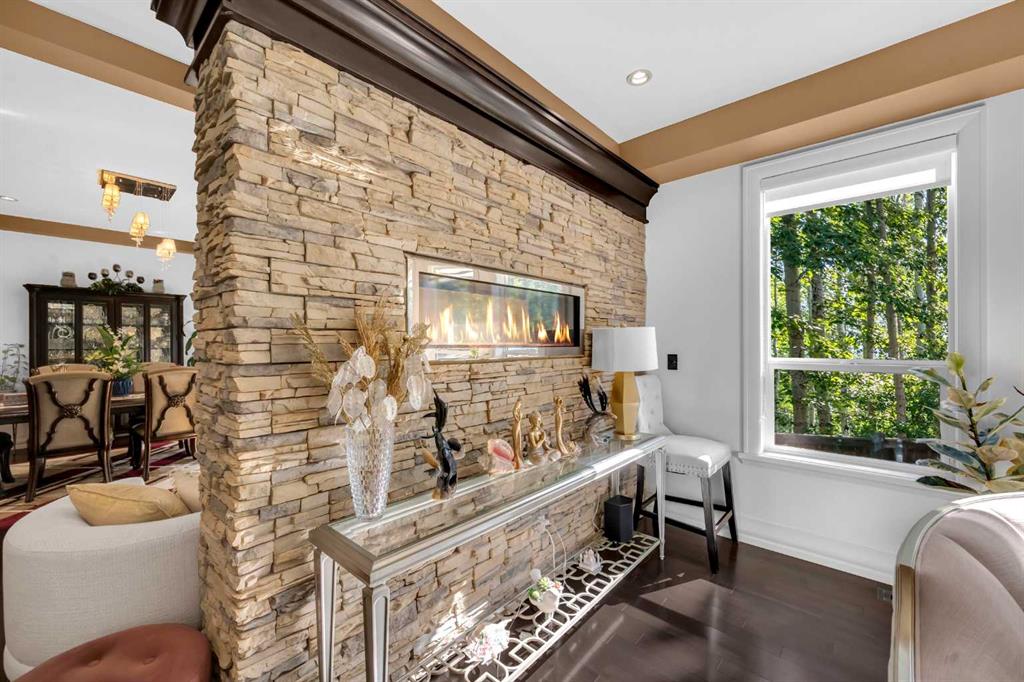 *** OPEN HOUSE SUNDAY OCTOBER 12TH 11 AM - 4 PM*** Discover a haven of refined living nestled against a tranquil forest in this former show home, where captivating stone and stucco exterior architecture meets a bespoke wooden trim lined interior that radiates timeless elegance. With over 4900 total square feet throughout this luminous five bedroom, three full bath residence it features an attached triple car garage, two powder rooms, and a main floor defined by soaring 9 foot ceilings, a gracious den, and a majestic 3D gas fireplace. The gourmet kitchen, ensconced beneath a chauffeured ceiling over the dining area offers floor to ceiling cabinetry, built in appliances, a vast pantry, Samsung smart fridge, and colossal island, all crafted for both culinary excellence and effortless entertaining. Upstairs, a sun drenched open-to-below bonus room with an electric fireplace overlooks the living area on the main floor and is accompanied by two bedrooms that share a Jack and Jill style bath with an additional common powder room upstairs. The luxurious master suite serves as an elegant retreat with a cathedral ceiling, pot lights, cozy gas fireplace, and spa-inspired ensuite featuring dual vanities, a two-person air tub, an opulent steam shower, and his and hers walk in closets creating a truly one of a kind space and atmosphere. The walkout lower level beckons as a radiant entertainment sanctuary, offering ample natural light through oversized windows, a near full kitchen including high end Electrolux appliances and combo oven/microwave, two additional bedrooms, and another versatile space ideal for a den or media lounge. Premium amenities within the home encompass central air conditioning, dual furnaces, water filtration system, abundant pot lighting and much much more. The southeast facing backyard flows seamlessly into a private wooded backdrop, crafting an idyllic extension of your indoor sanctuary and presenting the perfect space for any gathering you could have. Just minutes from top tier schools such as William D. Pratt School and Royal Oak School, the YMCA, shopping centers, and grocery stores, this residence delivers an extraordinary fusion of elevated design, sophistication, and effortlessly accessible community luxury that can only be gained by making this home yours.
