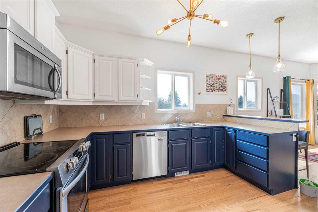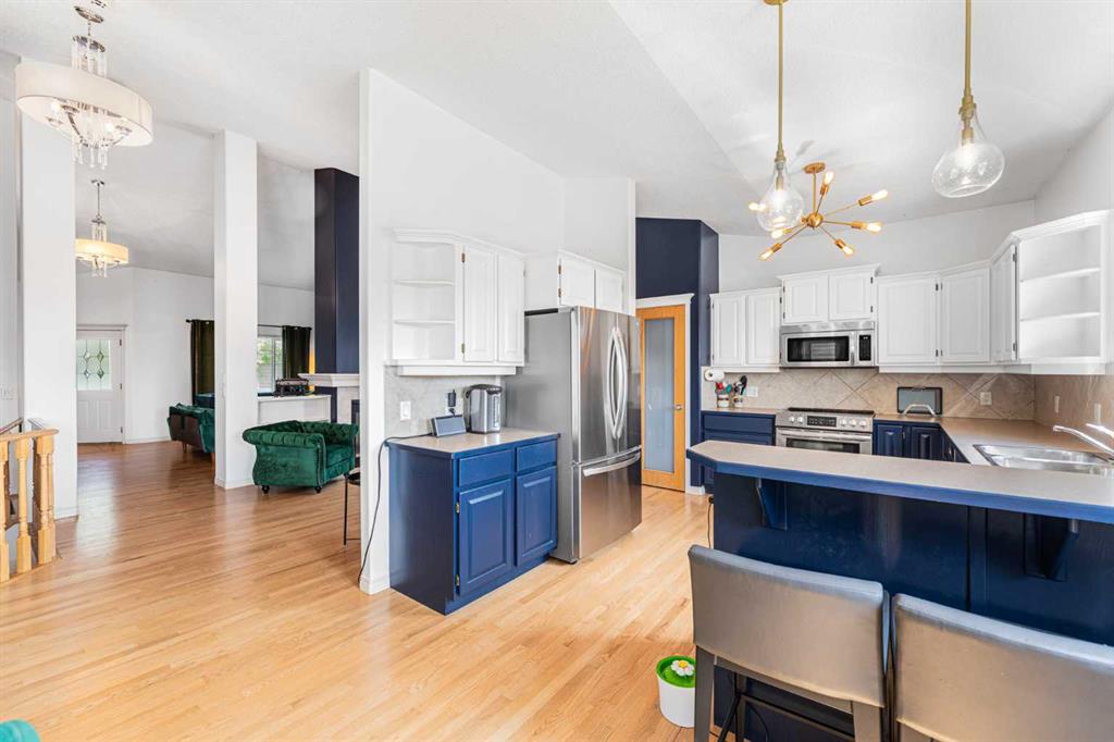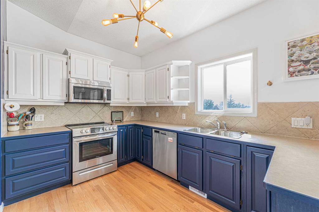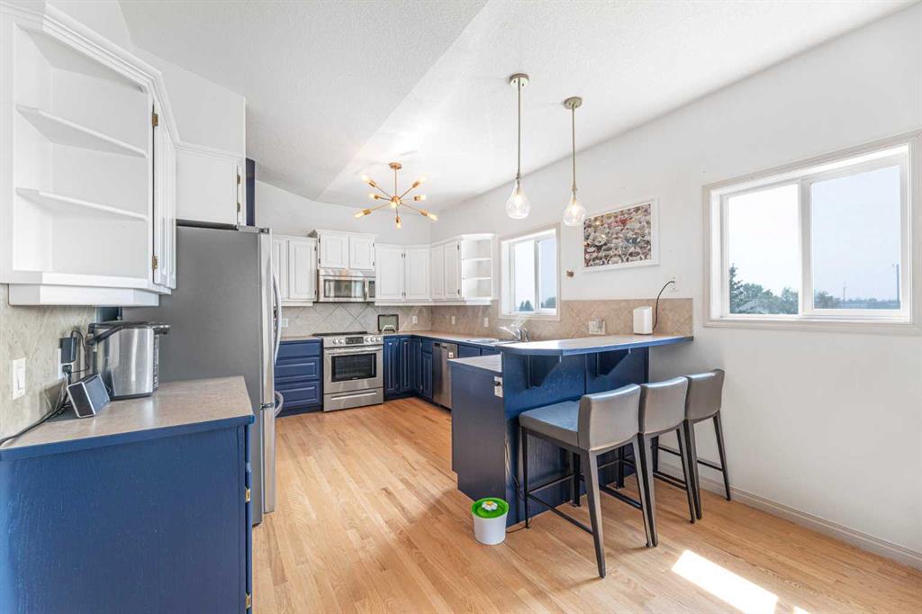 |OPEN HOUSE SATURDAY OCT. 11 12:00 - 2 PM| Come on in and take a look! Welcome home to this beautifully renovated duplex offering exceptional value in one of Chestermere’s most desirable communities. With over 2,400 sq. ft. of stylish living space, including a fully finished walkout basement opening onto a spacious pie-shaped backyard, this home combines elegance and functionality. Enjoy stunning mountain and lake views from your downstairs patio or the private balcony connected to the luxurious primary suite, complete with a jetted soaker tub, oversized shower, and redesigned walk-in closet (2024). The chef-inspired kitchen features updated appliances and lighting (2022), ample cabinetry, and abundant counter space. Entertain guests effortlessly in two inviting dining areas, or elevate your remote work experience by using one as a bright and spacious home office. The main floor impresses with 14-foot ceilings, a feature fireplace, custom built-in shelving, and refinished original hardwood, with luxury vinyl plank flooring throughout the lower level (2022). A maintenance-free yard and double garage (new door 2022) provide a convenient lock-and-leave lifestyle ideal for snowbirds or busy professionals. Family and guests have their own retreat downstairs with two bedrooms, a games room featuring another fireplace, pool table, and wet bar, 4pc bath, and an additional storage area where you will find a newer furnace that was installed in 2022. Steps away from Chestermere’s beaches, parks, shops, schools, and amenities, and conveniently located just 15 minutes to East Hills Shopping Centre and 30 minutes to downtown Calgary, this property offers affordable lakeside living at its finest. This home must be viewed to appreciate this outstanding Fully Finished Walk-Out Bungalow1