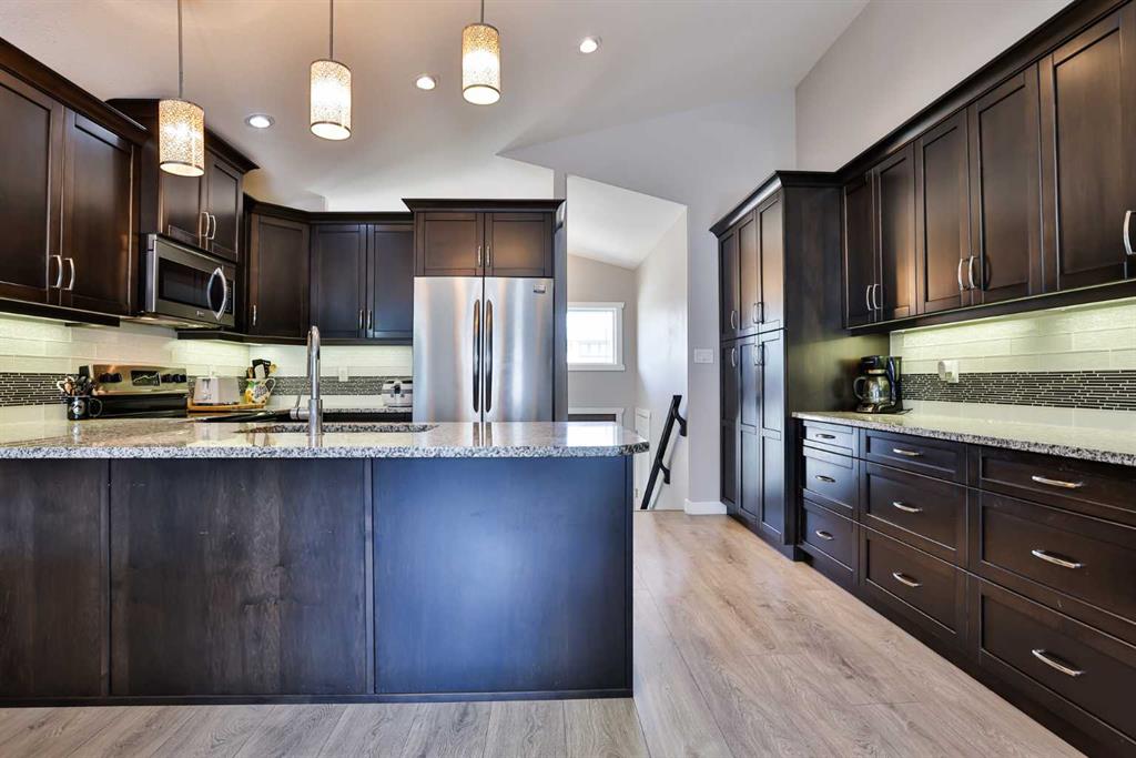 Inside, you’re welcomed by high ceilings and an open-concept main floor featuring a gorgeous kitchen with Adora soft-close cabinets, granite counter-tops, $10,000 in custom cabinet upgrades and hard-wired under-cabinet lighting that adds both function and elegance. The main floor has a wonderful layout that balances everyday comfort with space to entertain.