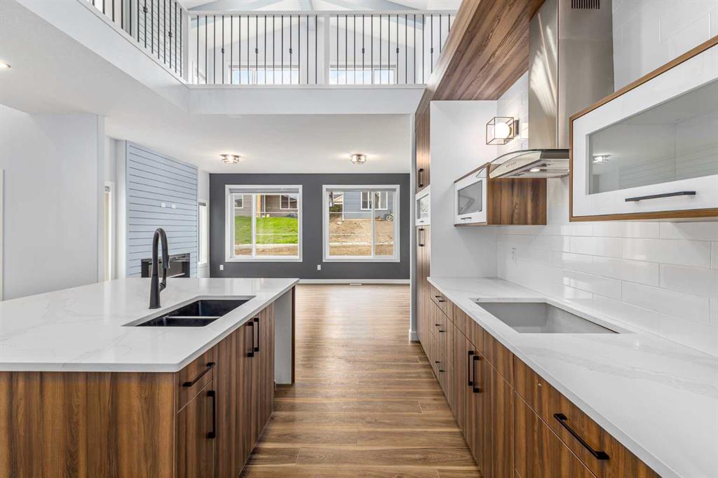 Welcome to your dream home in the vibrant and scenic community of Rivercrest, Cochrane. Nestled along the edge of nature and just minutes from everyday conveniences, this brand new, beautifully crafted home by Victory Homes LTD blends modern elegance with practical family living. Known for exceptional quality and craftsmanship, Victory Homes is quickly making waves in Rivercrest and neighboring Greystone, delivering homes that are as stylish as they are functional. From the moment you arrive, you’ll be captivated by the home’s open-concept layout and abundance of natural light. Step inside to discover durable luxury vinyl plank flooring that flows throughout the main floor, designed to withstand busy family life while maintaining a sleek, contemporary look. A main floor bedroom and full 3-piece bathroom provide incredible flexibility, perfect for guests, multi-generational living, or a private home office. At the heart of the home is a stunning open-concept living area, enhanced by soaring open-to-above ceilings that create a dramatic and airy atmosphere. Large windows flood the space with natural light, while the seamless flow between the living, dining, and kitchen areas makes entertaining effortless. The modern kitchen boasts premium finishes, quartz countertops, ample cabinetry, and a central island ideal for gathering with family and friends. Unique and functional upgrades include a dedicated dog wash station, a spacious rear deck perfect for outdoor dining, lounging, or summer BBQs in your generously sized backyard. Upstairs, a bridge-style bonus room offers a versatile second living space ideal as a media room, play area, or quiet retreat. The luxurious primary suite is your personal haven, featuring a spacious layout, walk-in closet, and a spa-inspired 5-piece ensuite with dual vanities, a soaker tub, and a glass-enclosed shower. Two additional well-sized bedrooms and a full bath complete the upper level, offering ample room for family, guests, or home office needs. Set in one of Cochrane’s most sought-after communities, this home combines tranquil, nature-rich living with unbeatable convenience. Enjoy nearby parks, playgrounds, top-rated schools, scenic walking paths along the river, and easy access to shopping, dining, and major commuter routes.
