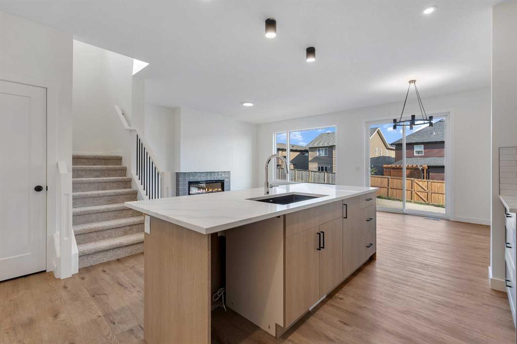 Brand new home built by Homes by Fifty Six, located in Heritage Hills of Cochrane. This home is loaded with upgrades & features which include: quartz, LVP, Tile, electric Fireplace, oversized garage, wrought iron railings, lots of windows allowing lots of natural lighting, 9\' ceilings main & lower, walk through pantry, south facing yard, back lane & much more. The main floor features a den, 2c bath, spacious great room with fireplace & a good size kitchen that offers an island, walk through pantry & breakfast nook that has access to the yard. The upper floor features a bonus room, 4pc bath, laundry & 3 good size bedrooms. The primary bedroom offers a walk in closet & full ensuite. The lower level is awaiting your ideas. Heritage Hills offers a blend of small-town charm and modern amenities. Residents enjoy access to parks, green spaces, and local conveniences such as Mountain Ridge Plaza, which hosts services like a pharmacy, fitness center, and dining options. The community is served by designated schools including Glenbow Elementary, Mitford School, and Bow Valley High School. With its tranquil atmosphere and proximity to both Calgary and outdoor recreational areas, Heritage Hills is an attractive choice for families and individuals seeking a balanced lifestyle. Fifty6 is devoted to the craft of legendary home-building. With a heritage dating back to 1956, building on the past and bringing a modern perspective to homebuilding and design. Click on link to view 3D walkthrough.