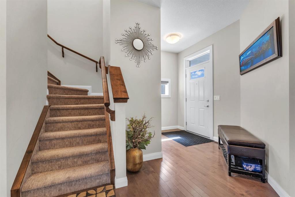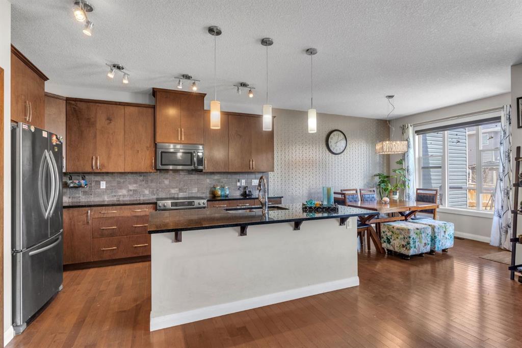 4 BEDROOMS | 3.5 BATHROOMS | DOUBLE ATTACHED GARAGE | ILLEGAL BASEMENT SUITE | SEPARATE ENTRY | HIGH END FINISHES |Discover the perfect blend of style, comfort, and functionality in this impressive 4-bedroom, 3.5-bath semi-detached home, ideally located in the vibrant community of Redstone. Offering over 1,900 sqft of above-grade living space, this modern 4-bedroom, 3.5-bathroom residence blends style, comfort, and functionality. Situated minutes from Stoney Trail, Metis Trail, Deerfoot Trail, the airport, shopping centres, and CrossIron Mills, the location offers unmatched convenience for commuters and families alike.Great news! A new elementary school has just been approved within walking distance of the home. Step inside to discover an open-concept main floor flooded with natural light and highlighted by soaring 9’ ceilings and elegant hardwood flooring. The chef’s kitchen boasts stainless steel appliances, a walk-in pantry, ample cabinetry, and a large granite island—perfect for entertaining. The spacious dining area seamlessly flows into a bright living room complete with a cozy fireplace. Additional main floor features include a powder room, convenient laundry, a welcoming foyer closet, and a soundproof shared wall for added privacy.