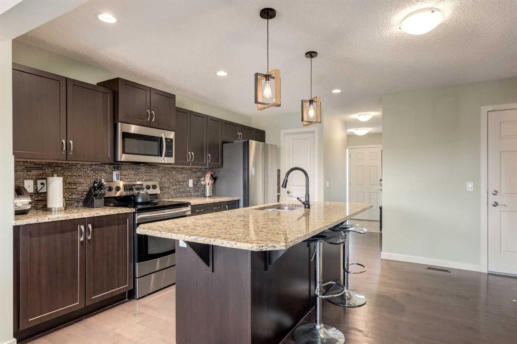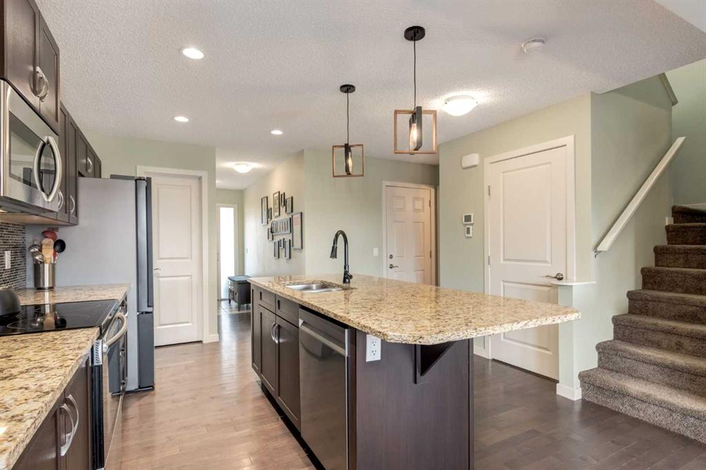 Beautiful semi-detached home situated in the sought after community of River Heights offering 1,896 SF of developed living space with 3+2 bedrooms, 2.5 bathrooms plus a bonus room. The bright and open main floor greets you into a large tiled foyer with seamless transition into the main living area with hardwood flooring throughout and a well equipped kitchen featuring quartz countertops, center island with eating bar, stainless steel appliances and a walk-in pantry. The dining area gives access to the SOUTH facing deck and living room enjoys backyard views. A powder room completes this level. Upstairs you will find a generously scaled bonus room, primary suite with a walk-in closet and 4 piece bathroom and 2 additional guest rooms which share a 4 piece bathroom. The basement expands your living space with 2 more bedrooms (or home office), laundry room and an abundance of storage. Don\'t overlook the OVER-SIZED attached single garage (24\'x13\') and spacious, fully fenced backyard. Ideally located within walking distance to parks, schools and minutes to an array of amenities. Nothing to do but move in!