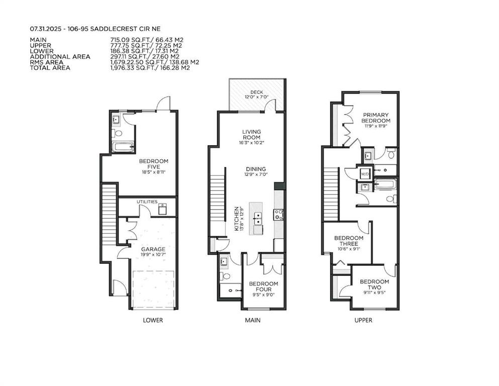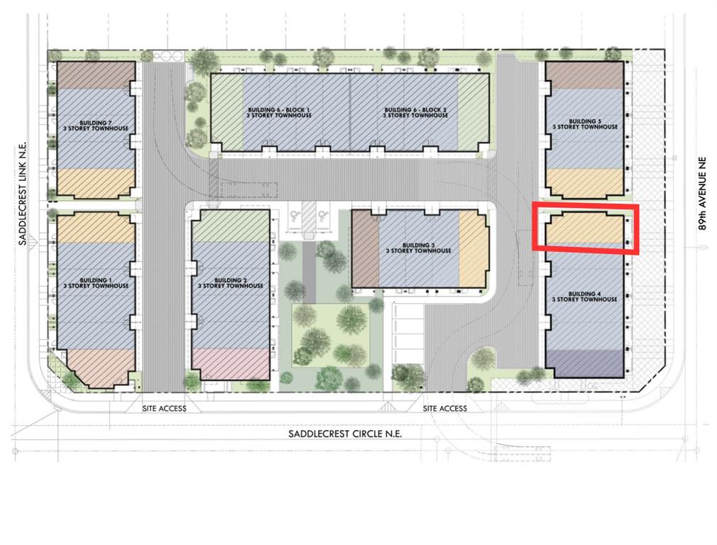 Welcome to Unit 106 at Saddlecrest Living - a rare 5-bed, 4-full bath end unit in a brand-new 43-townhome community redefining modern suburban living in Calgary’s Northeast. Thoughtfully planned across three levels with an attached garage, this home was designed for families who value both space and flexibility. A standout feature is the main-floor guest suite with full bath and private rear entry - perfectly suited for multigenerational living, aging parents, independent teens, or extended family, while also offering potential as a private retreat for guests or supplemental income. The open-concept main level is the heart of the home, where design and comfort meet. 9-foot ceilings create openness, complemented by triple-pane windows that maximize natural light and improve efficiency. Floor-to-ceiling cabinetry, premium quartz countertops, and sleek stainless steel appliances define the kitchen with a modern, high-end finish. The primary ensuite features a custom shower with built-in seat, while full-height tile finishes add sophistication to each bathroom. Warmth and comfort are layered through carpeted upper levels, balanced by the durability of luxury vinyl plank flooring on main living areas. Elevated finishes throughout set this residence apart from typical area builds, offering a refined yet welcoming atmosphere for family connection. Built with resilience and longevity in mind, the home is wrapped in stucco and Hardie siding engineered for Calgary’s climate, offering enhanced hail protection and ensuring lasting quality with low maintenance. Life at Saddlecrest Living means being part of a connected community: walk to schools, playgrounds, the Saddletowne LRT, shopping, clinics, and fitness centres, with effortless access to Stoney Trail, Calgary International Airport, Costco, CrossIron Mills, and New Horizon Mall. MOVE IN WITH EASE - Condo fees waived until year-end so you can settle into Saddlecrest Living without added costs. Whether this is your first home, the next step for your growing family, or a smart long-term investment, Unit 106 delivers space, versatility, and community in one of Calgary’s most dynamic corridors. Please note - all units in this 6-plex (MLS A2252744), including Unit 106, are available for purchase individually or as a full package.