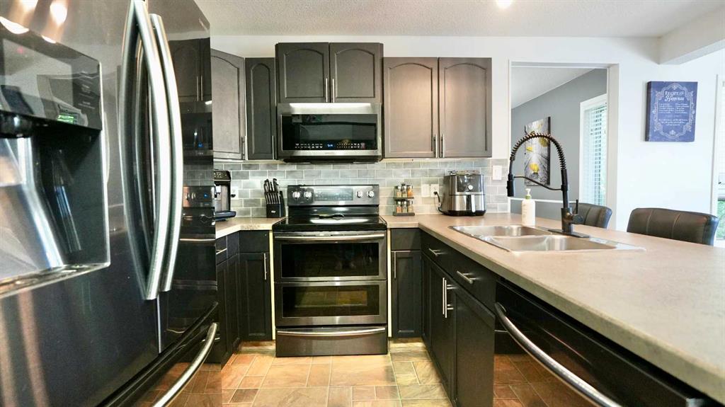 Spacious, Updated Family Home in a Prime Location! This beautifully refreshed home is designed with families in mind and offers the space, comfort, and convenience you’ve been looking for. Located in a highly sought-after, family-friendly neighborhood, you’ll love being just steps away from a large community park with playground, walking trails, and an outdoor skating rink. With a total of 5 bedrooms and 3.5 bathrooms, there’s room here for everyone. Upstairs, you’ll find four generous bedrooms all on the same level—a rare and practical layout for family living. The primary suite is a true retreat, complete with a large ensuite featuring a relaxing soaker tub, walk-in shower, and walk-in closet. The main floor offers a bright, open layout where the kitchen, eating nook, and family room flow seamlessly together, creating the perfect hub for entertaining or casual everyday living. The family room offers a cozy wood fireplace making it a great place to gather round. A convenient main floor laundry room makes daily life a little easier. The fully finished basement expands your living space even further, ideal for a rec room, home theater, or kids’ hangout. Outside, the property continues to impress. The 23x23 attached garage provides excellent parking and storage, while the 12x20 backyard shed offers even more versatility. The yard is beautifully landscaped and easy to maintain thanks to the underground sprinkler system. A large, private back deck and fully fenced yard make it the perfect spot for children, pets, and summer evenings outdoors. This is a home where modern updates meet family-friendly design—all in a welcoming neighborhood close to everything you need.