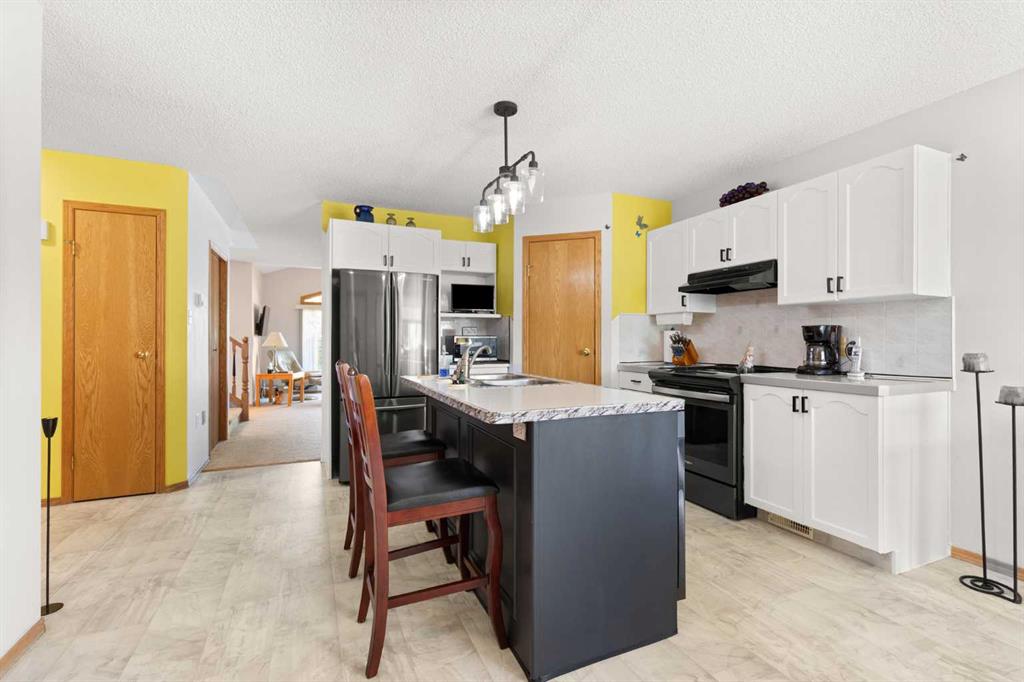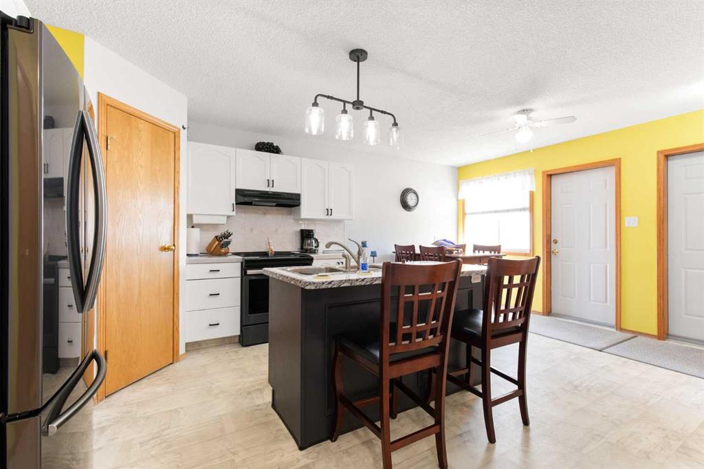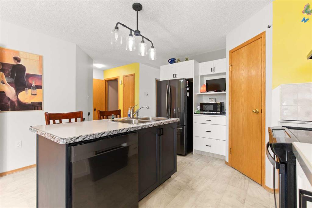 PRICE REDUCED! Sellers are transitioning to a retirement community and are motivated to sell! This well-loved home has been well cared for and is move-in ready for the next owners. This spacious 1,442 sq. ft. corner-unit two-storey condo shows true pride of ownership and offers a smart layout in a fantastic location close to all the amenities the south side of Medicine Hat has to offer. The main floor features a bright living room with big windows and a cozy gas fireplace, plus a large modernized kitchen with a spacious island with seating, dining area, corner pantry, and complemented by a newer appliance package. Convenient main-floor laundry and a 2-piece bath add to the functionality of this layout. Upstairs you’ll find two generous bedrooms, each with walk-in closets; the primary bedroom also includes a private 3-piece ensuite bathroom. 4 piece bath can also be found on top floor. The fully finished basement provides a large family room with endless possibilities for entertaining, fitness, or relaxation. There is also roughed-in plumbing for a future bathroom in the basement if so desired. Outside, enjoy a cute fenced yard with patio space, perfect for summer evenings. The home comes with an attached single garage, an additional outdoor parking stall, and is located just steps from guest parking. Mechanical updates include a newer hot water tank, along with recently serviced furnace and central A/C for peace of mind. With nearby access to Medicine Hat College, the golf course, walking trails, shopping, and more, this condo is an ideal fit for first-time buyers, students, small families, or anyone seeking a low-maintenance lifestyle in a great location.