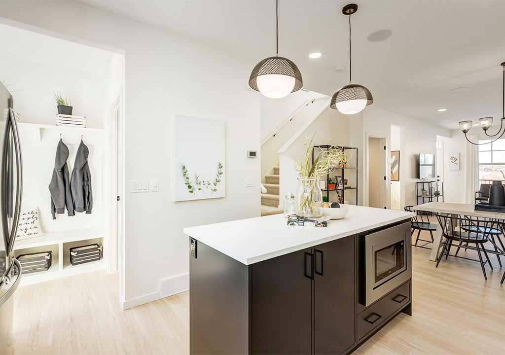 The Sasha model from Homes by Avi was built with real family life in mind. Out front, a FULL-WIDTH PORCH for coffee chats or Halloween pumpkins. Inside, 9\' main floor ceilings create breathing room, and an open-concept kitchen/dining/lounge keeps everyone connected without crowding. The kitchen doesn’t just look sharp—it comes with FULL-HEIGHT CABINETRY, QUARTZ COUNTERS, CHIMNEY HOOD FAN, BUILT-IN MICROWAVE, and a SILGRANIT SINK tough enough to handle spaghetti night. A MAIN FLOOR POCKET OFFICE means you can take Zoom calls without competing with cartoons in the background, and the 10\' x 10\' back deck (with gas line for the BBQ) extends the living space straight into summer.