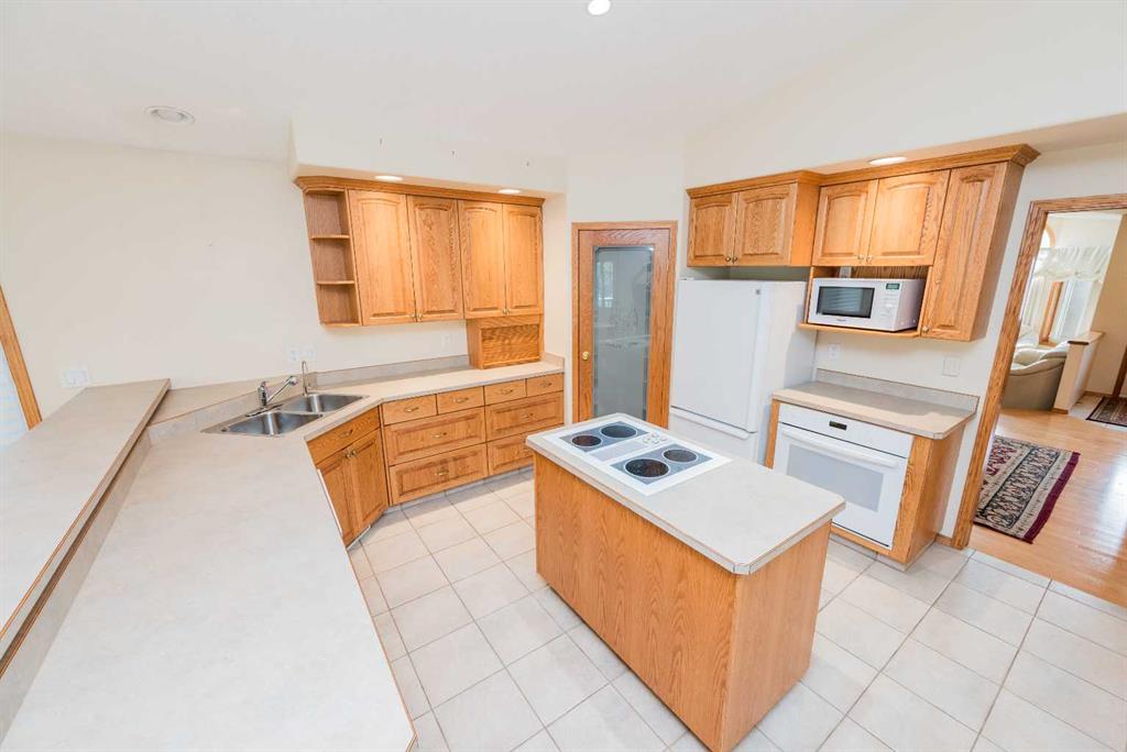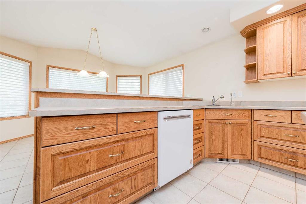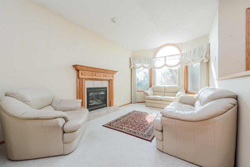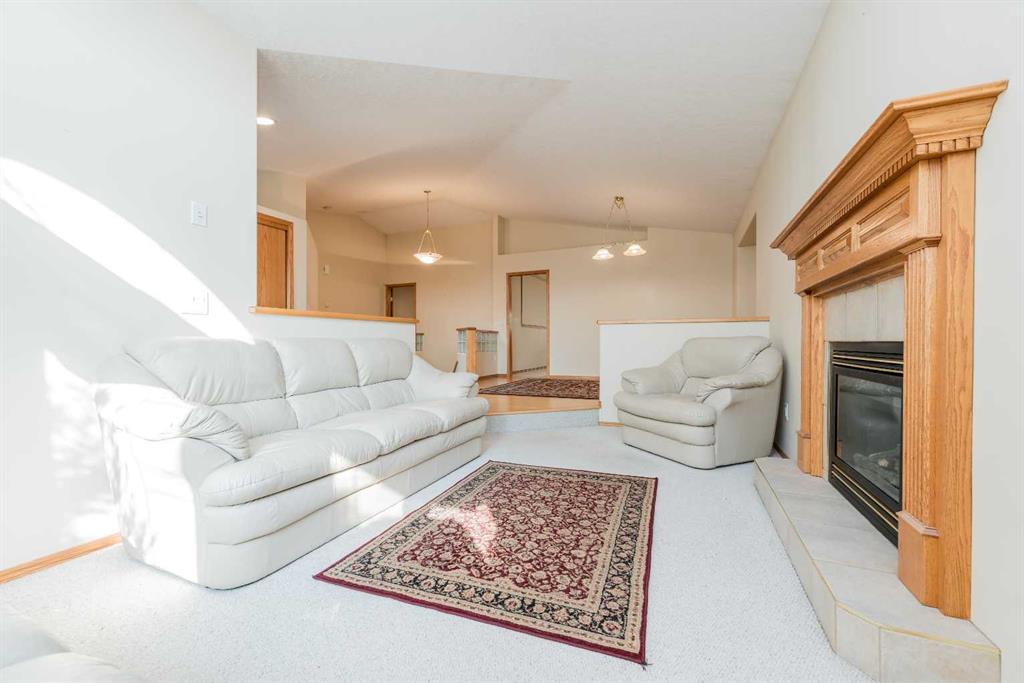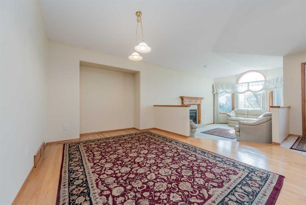 The main floor features a spacious primary suite with a walk-in closet and a luxurious ensuite, complete with a soaker tub and separate shower—your own private retreat. A versatile second bedroom/den offers flexibility for guests or a home office, while the convenient main floor laundry suite, located just off the garage, adds everyday ease. Large Formal Dining space leads down to the sunken living room with bay window and gas fireplace. Large kitchen at the back of the home with dining nook and sit up bar, chefs island, built in appliances, ample custom cabinets. Basement is expansive and offers 2 more good size bedrooms, bathroom, ample storage, and a large cozy family room with built in shelving and French doors. Back deck is private and yard is landscaped, treed and fenced. GARAGE IS OVERSIZED WITH TANDEM SPACE AND HEATED, PLUS SHELVING AND DOUBLE DOORS.