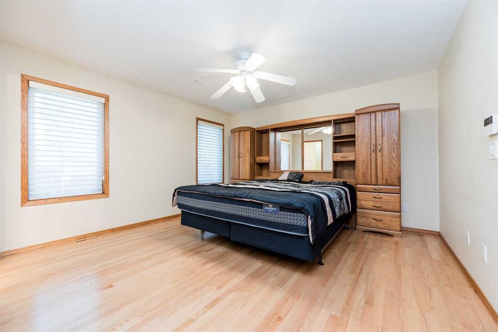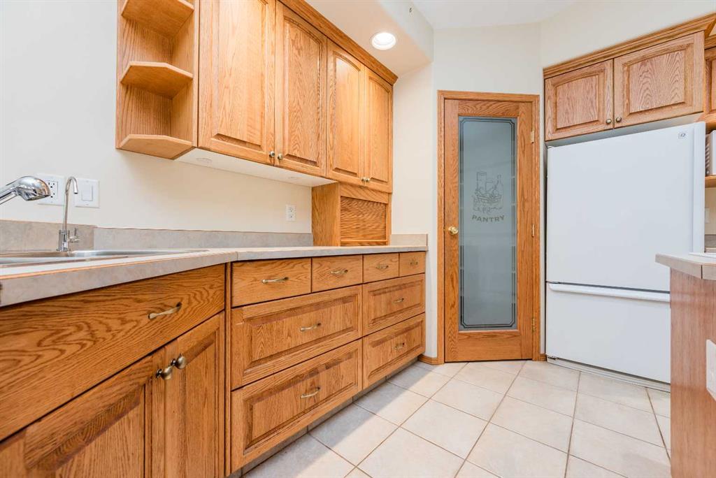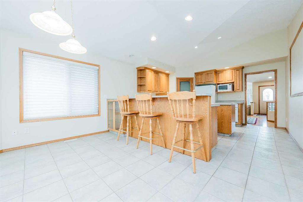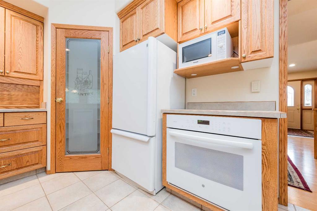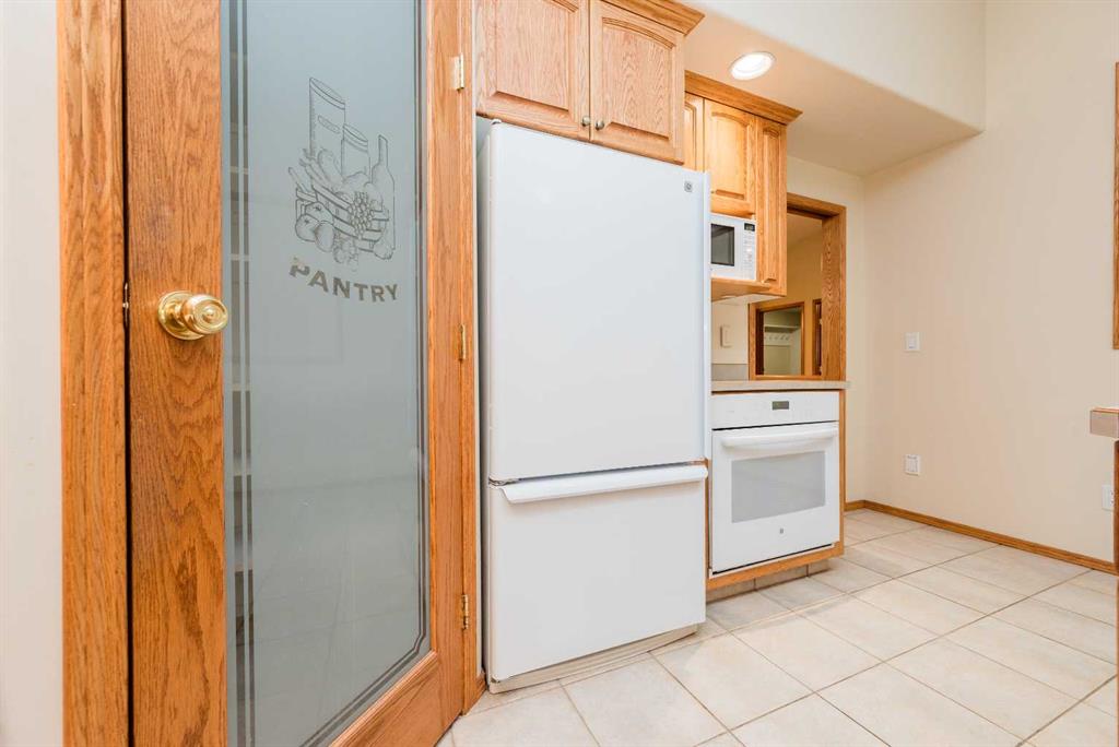 The main floor features a spacious primary suite with a walk-in closet and a luxurious ensuite, complete with a soaker tub and separate shower—your own private retreat. A versatile second bedroom/den offers flexibility for guests or a home office, while the convenient main floor laundry suite, located just off the garage, adds everyday ease. Large Formal Dining space leads down to the sunken living room with bay window and gas fireplace. Large kitchen at the back of the home with dining nook and sit up bar, chefs island, built in appliances, ample custom cabinets. Basement is expansive and offers 2 more good size bedrooms, bathroom, ample storage, and a large cozy family room with built in shelving and French doors. Back deck is private and yard is landscaped, treed and fenced. GARAGE IS OVERSIZED WITH TANDEM SPACE AND HEATED, PLUS SHELVING AND DOUBLE DOORS.