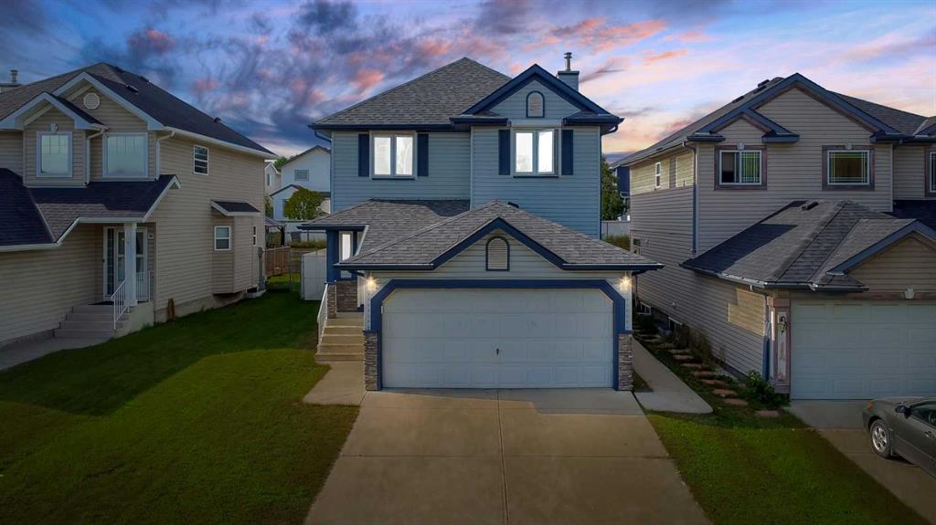Welcome to your new home! Step into this beautifully maintained 2-storey gem in the heart of desirable Coventry Hills! Offering over 2,300 sq. ft. plus a fully finished basement, this 3-bedroom, 3.5-bath home is move-in ready! From the moment you walk in, you’ll be captivated by the bright, open-concept layout with an abundance of natural light streaming through the LARGE WINDOWS THROUGHOUT the home. Enjoy peace of mind for years to come with a new roof (summer 2025), newer hot water tank (Sept. 2021), newer furnace (Sept. 2021), fresh new paint, new carpets, and stunning hardwood floors. The bright kitchen features stainless steel appliances, ample counter space, and a spacious dining nook surrounded by windows, with direct access to your oversized deck and fully landscaped backyard — perfect for family gatherings, entertaining and summer BBQs. Upstairs you’ll find three generous bedrooms including a massive primary suite with extra windows, a walk-in closet, and a spa-inspired ensuite where you can relax and recharge. The lower level is an entertainer’s dream with a feature rock wall, built-in TV/speaker niches, games/media area/family room, full bathroom, and the ultimate man cave vibe. Additional highlights include CENTRAL A/C, exterior roll shutters for comfort and efficiency, and a front Double-attached garage. Perfectly situated only steps from parks, top-rated schools, playgrounds, scenic pathways, shopping, VIVO Centre, library, transit, and with quick access to Stoney Trail, this home offers both convenience and lifestyle and has many beautiful features! Don’t miss your chance to make it yours! This home truly checks every box for location, lifestyle, and value!!