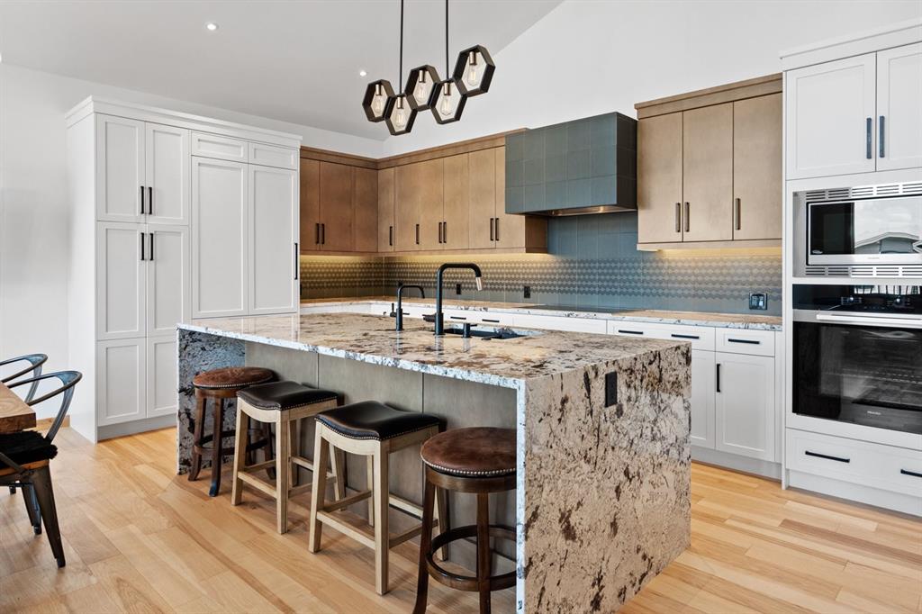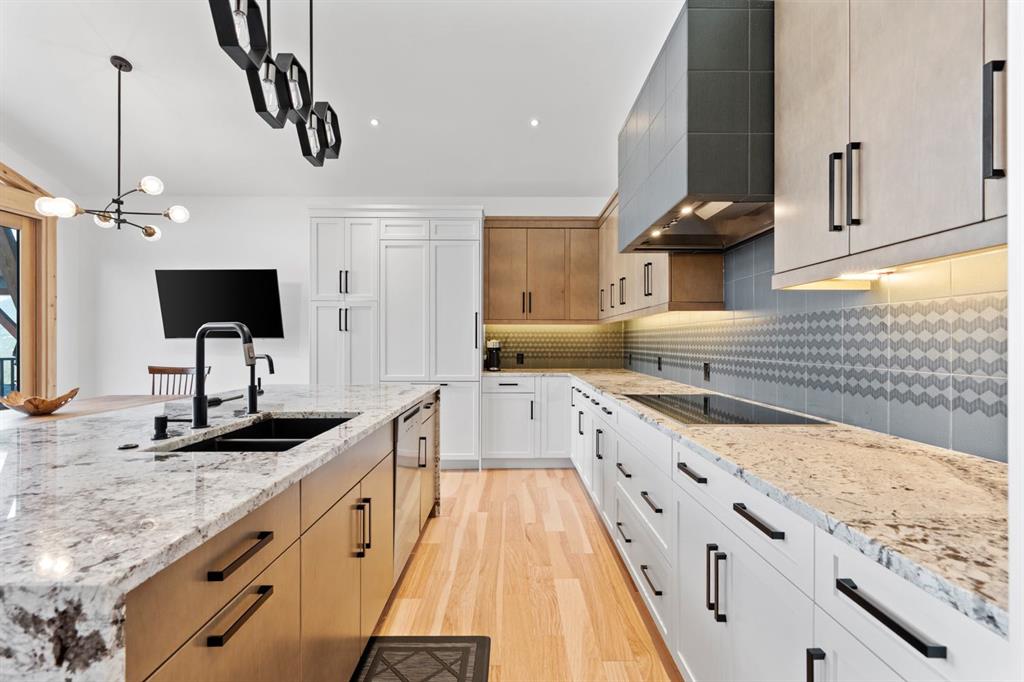 Nestled on a quiet street in Canmore\'s sought-after Three Sisters community, this stunning single-family residence perfectly captures the essence of mountain living. From the moment you step through the grand entrance, you\'re welcomed by soaring vaulted ceilings and the elegant open riser staircase that sets the tone for the sophisticated yet rustic design throughout. The heart of the home flows seamlessly with an open concept kitchen, dining, and living space anchored by beautiful engineered hardwood floors. A cozy wood burning fireplace creates an inviting atmosphere while the floor-to-ceiling windows frame the spectacular west-facing views of Cascade Mountain and the Rundle and Fairholme ranges. The gourmet kitchen is a chef\'s dream featuring granite countertops, a stunning waterfall island with eating bar, water filtration system and premium Miele stainless steel appliances that blend functionality with refined style. Upstairs the primary suite is a true sanctuary flooded with natural light. The spa-like ensuite featuring heated floors indulges with a luxurious soaker tub, dual vanities, and oversized tile work that reflects quality craftsmanship. Step out from the primary onto your own private sun deck and enjoy your morning coffee against the backdrop of east-facing mountain and forest vistas. The second upper level bedroom continues the theme of comfort and connection to nature, boasting its own ensuite, expansive windows and more incredible views. The upper-level laundry room adds convenience to everyday living. The lower walkout level equipped with heated floors expands your living possibilities with two additional spacious bedrooms and a full bathroom, perfect for family or guests. This level opens to its own patio with hot tub and yard area, creating wonderful indoor-outdoor flow. Whether you\'re entertaining at the wine bar or working from the office/flex space, this level adapts to your lifestyle needs. Practical luxury defines the finishing touches from the spacious mudroom, ample storage throughout, and clean air filtration system, to the heated triple attached garage for all of your mountain toys. Fresh, low-maintenance landscaping out front welcomes you home each day. This quintessential mountain home strikes the perfect balance between modern convenience and rustic mountain charm. Located in the rapidly growing Three Sisters community with exciting amenities planned to serve all your daily needs, 232 Stewart Creek Rise offers not just a home, but a gateway to the mountain lifestyle you\'ve been dreaming of.
