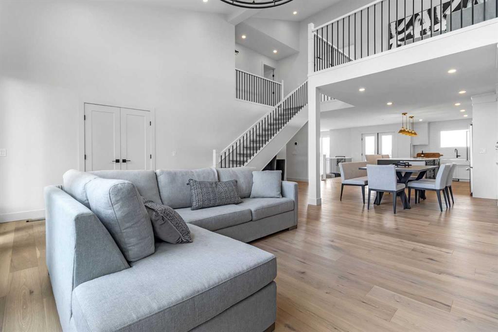 INSTANT EQUITY OF OVER 300K PLUS QUICK POSSESSION HOME !!! A CUSTOM DESIGNED LAKE FRONT MARVEL by SuiGeneris Homes! COMPLETELY RENOVATED DOWN TO THE STUDS WITH ALL NEW ELECTRICAL WIRING, PLUMBING, WINDOWS, SIDING, HUGE MAIN FLOOR DECK,MASTER SUITE PRIVATE LAKE FRONT DECK, Epoxy finish on garage floor. Oversized 2 car garage with epoxy floors, NEW FLOORING, NEW GARAGE DOOR, NEW HVAC, ALL NEW ROOFING, WINDOWS, DOORS, SPRAY FOAM INSULATION THROUGHOUT THE HOUSE AND MORE! COMPLETED WITH A NEW FLOOR PLAN AND ADDITION TO THE HOUSE. Sitting on a HUGE LOT THAT IS RIGHT ON THE LAKE with over 4,200 sq ft of living space. This well planned floor plan offers 5 Beds, 1 flex area, 5.5 baths & an attached OVERSIZED 2 car Garage. 3 ENSUITE BEDROOMS!!! ONLY 10 MINUTES TO/FROM CALGARY. The professionally designed interior is an elegant balance of light tan hardwood floors with white and grey walls and black finishing. The combination of Large windows and Vaulted ceilings in the living areas and bedrooms give lots of natural light to the living areas. In addition to the lake views, enjoy the views of the golf course from 2 bedrooms and a loft on the upper floor. Other features include Paved, drive through driveway, rich combination of Smooth Acrylic Stucco, stone & batten boards on exterior, Custom Cold Air Return Grills, Built in custom closet systems, ship lap feature walls, 2 fire places on main floor and one in master bedroom, Roughed-in Smart monitoring systems, Hardwood Flush Mount Vents in hardwood areas, open riser stairs, 5” Engineered Hard Wood on main floor, LVP basement floors and mudroom, premium carpet, Custom Shower Base with tile to ceilings in all showers, Premium Delta Plumbing package, 36” lower cabinets. All vanities have upgraded drawer style fronts, 8” Stone back splash, High efficiency Tankless Water Heater, Roughed-in Garburator, roughed-in Central Vacuum, High Efficiency Furnace & Smart Thermostat, BBQ Gas line and roughed in garage heater. The kitchen features include a deluxe Kitchen Aid appliance package with waterline to the fridge. Offering Quick and easy access to highway 16, Downtown Calgary, lots of shopping at the nearby East Hills Mall, restaurants, nearby schools and other conveniences. Drive through drive way with fully completed landscaping. MOVE IN READY HOME. READY FOR QUICK POSSESSION