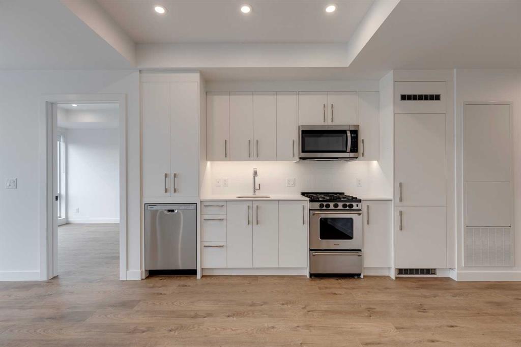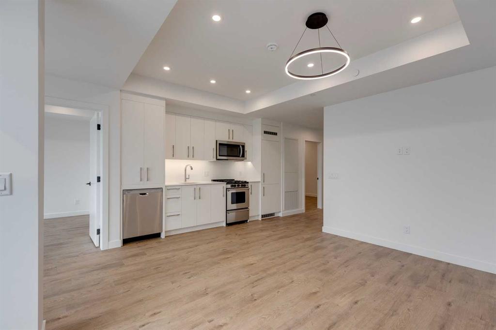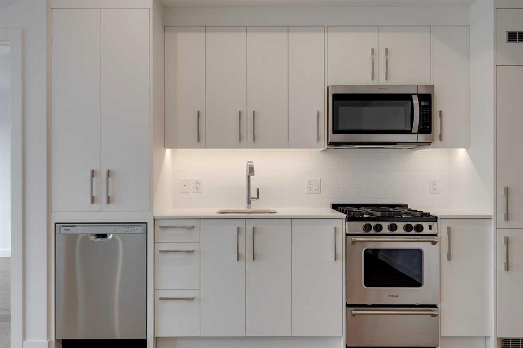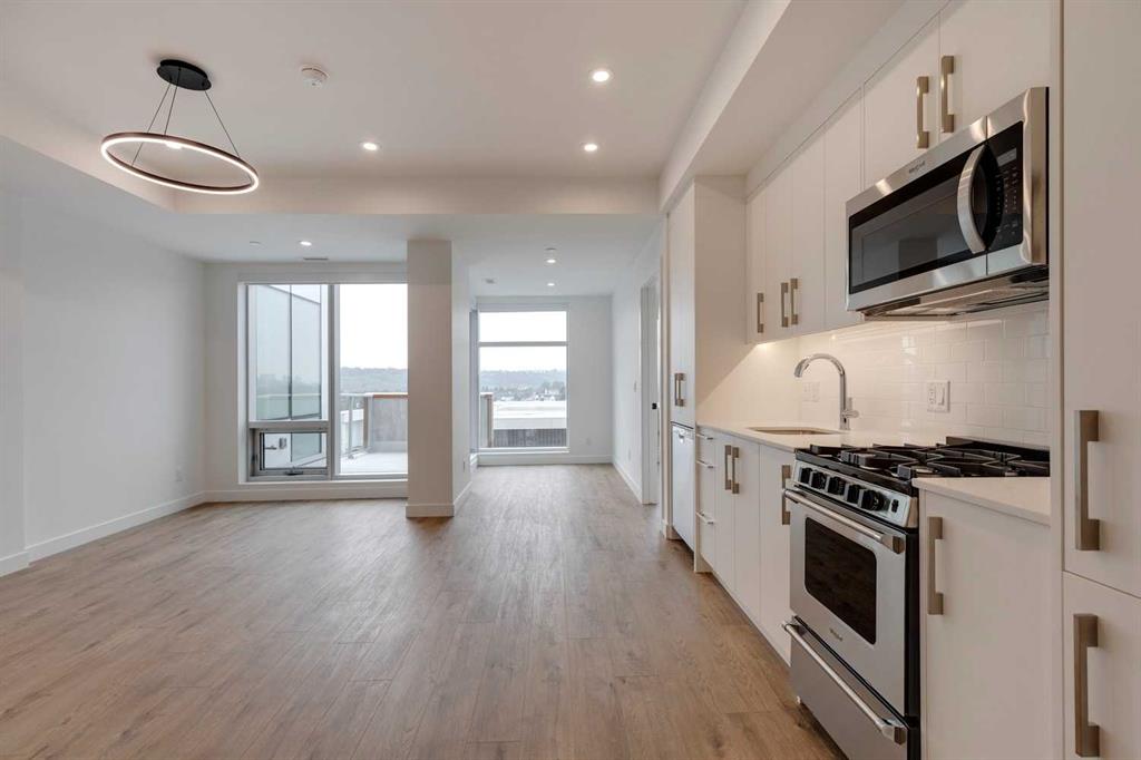 Welcome to Frontier by Truman Homes – a boutique concrete residence perfectly positioned in the desirable community of West Hillhurst, just steps from the vibrant Kensington district, one of Calgary’s most walkable and eclectic inner-city neighborhoods. This brand-new 2-bedroom, 2-bathroom plus den home is located on the 7th floor and offers 840 sq. ft. of modern, open-concept living. Designed to maximize space and light, the unit features floor-to-ceiling windows that flood the interior with natural light, vinyl plank flooring throughout, and a sleek kitchen complete with quartz countertops, stainless steel appliances, and a gas stove. The spacious living and dining areas open onto an east-facing balcony, offering beautiful sunrise views and an airy extension of your indoor living space. The large primary bedroom is bright and inviting, with floor-to-ceiling windows and ample closet space, while the contemporary 4-piece bathroom includes a quartz vanity and in-suite laundry for everyday ease. A second bedroom and an additional 4-piece bathroom provide flexibility for guests, roommates, or a home office. Residents of Frontier enjoy a wide array of thoughtfully curated amenities, including a state-of-the-art fitness centre, coworking lounge, and a beautifully landscaped terrace on the second floor. Titled underground heated parking adds year-round comfort and convenience. The building also offers direct access to on-site retail such as FreshCo, C+C Coffee, Crave Cupcakes, Metro Liquor, and more. Whether you\'re seeking a dynamic urban lifestyle or a smart investment opportunity, this well-appointed unit combines upscale finishes, efficient design, and an unbeatable location. With boutique shopping, trendy cafés, award-winning restaurants, and the scenic Bow River pathways just minutes away—not to mention quick access to downtown Calgary and the LRT—Frontier offers the very best of inner-city living.