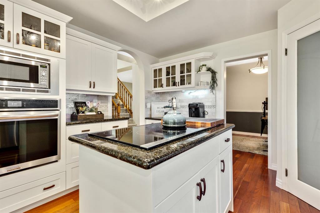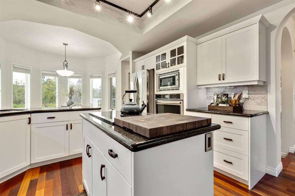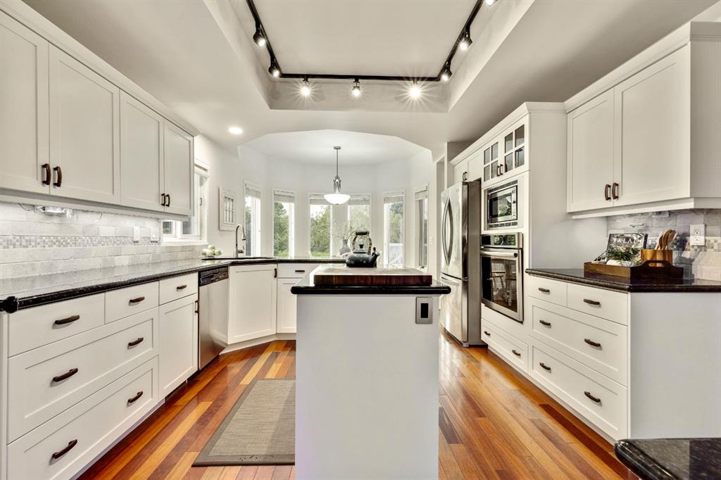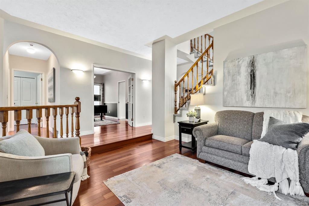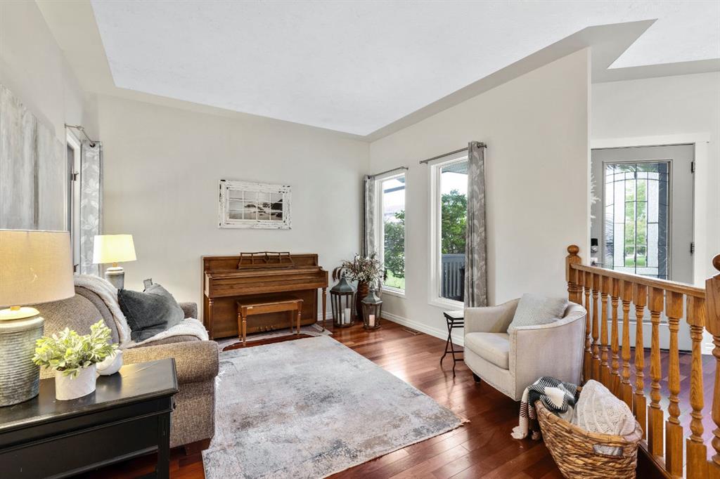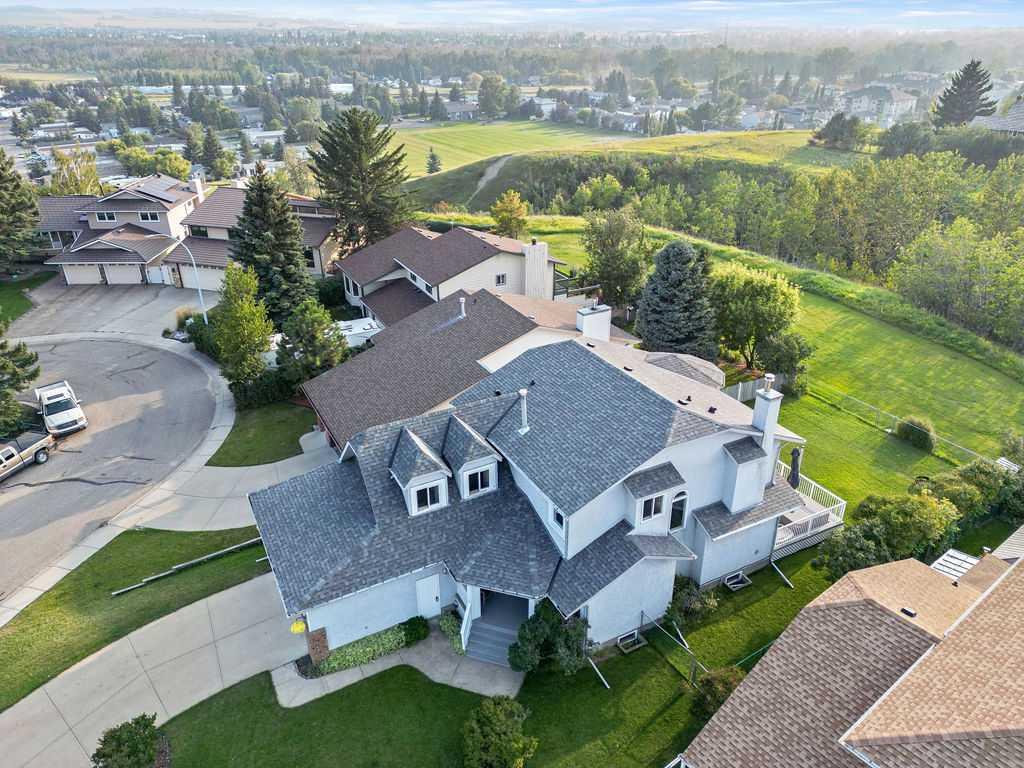 This beautifully maintained four-bedroom home, set on a concrete foundation and backing onto a serene environmental reserve, offers an unbeatable combination of comfort, updates, and location. A welcoming formal living room greets you at the front of the home, while a versatile dining room just off the kitchen can also serve as the perfect home office. The main and upper floors have been freshly painted, and new carpet was installed this year, creating a bright and inviting atmosphere. The updated kitchen features freshly painted cabinets and connects seamlessly to the sunny breakfast nook and cozy living room with its wood-burning fireplace, all overlooking the private yard and nature beyond. Upstairs, the spacious primary suite includes a relaxing sitting area and a generous ensuite, while two additional bedrooms and a versatile fourth bedroom above the garage (also ideal as a bonus room) provide flexible living options. The basement adds even more space with an additional large bedroom, four piece bathroom, living area, wine cellar/hobby room and loads of storage. Important upgrades include the roof replacement two years ago, full replacement of polyb piping, and a newer hot tub to enjoy year-round. Loaded with character, thoughtful updates, and peaceful setting, this is a home you won’t want to miss. Check out the tour for a virtual walk through of this amazing home!