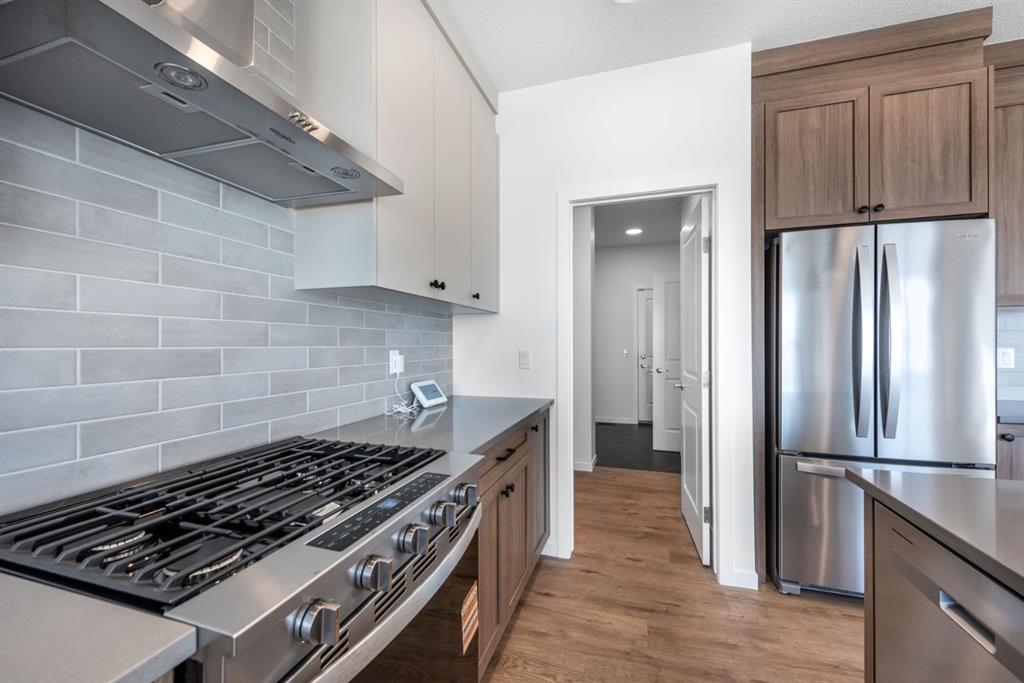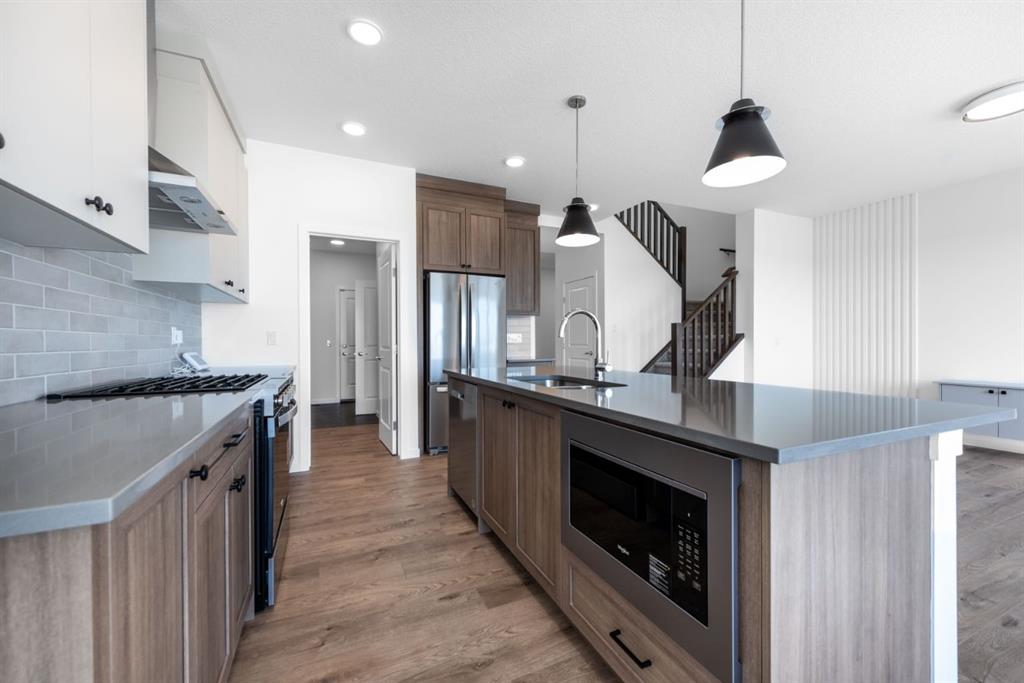 LOCATION MATTERS !! BACKING ONTO GREEN SPACE IN CLEARWATER PARK , CHESTEREMERE. Step into luxury with this gorgeous 2-storey Front attached garage brand-new build that perfectly blends elegance, comfort, and modern living. Backing directly onto beautiful GREEN space, this home offers unmatched tranquility and scenic views—a rare find in a prime Chestermere location. Full access to the community clubhouse with an indoor swimming pool and fitness facilities, sports courts, school sites with playfields, skating rinks, plaza for public and private outdoor events and numerous walking paths. The bright, open-concept main floor is designed to impress, featuring 9-foot ceiling, LVL flooring, loads of natural light, a spacious kitchen with cabinetry up to ceiling, Central kitchen features direct access to mudroom through PANTRY, upgraded stainless steel appliances package, quartz countertops through out in the house, Kitchen Island for entertaining with a cozy great room/family room for relaxing evenings. The main floor breakfast nook/Dinning opens to a spacious backyard deck, perfect for dining or relaxation. Upstairs, enjoy a spacious bonus room and additional windows that fill the home with natural light. The primary bedroom offers a walk-in closet and a 4-piece ensuite with his/her sink and with a standing shower. Additional two more bedrooms, and 4pc full bathroom, Laundry room completes the upper floor. The basement boasts larger windows and a SIDE ENTRANCE, ready for your future plans. Easy access to the Trans Canada HWY 1, while primary north and south connections include Stoney Trail, HWY 791 and HWY 797. *DON\'T MISS THIS OPPORTUNITY! * Schedule a showing today and experience the luxury living with stunning park views!